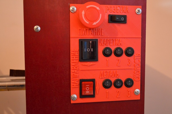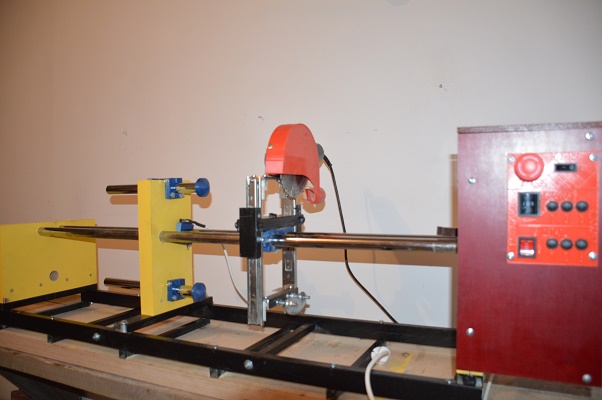 Копировальный станок по дереву КС 5. Предназначен для копирования изделий из дерева разнообразной формы и длины. Станок оснащён розеткой для подключения режущего инструмента, вытяжки и концевыми выключателями которые обесточивают станок и розетку по завершении копирования. В качестве режущего инструмента используется УШМ с 125 мм трёх зубым диском по дереву фирмы GRAFF.( Так же есть возможность установить в качестве режущего инструмента Электрорубанок или Фрезер ) Станок имеет три скорости движения каретки и три скорости вращения детали. Движение каретки и вращение детали осуществляют моторредукторы на 12 вольт для этого установлен блок питания на 12 вольт. Так же для понижения передаточного числа в станке используются пластиковые шестерни. Для перемещения каретки используется резьбовая шпилька М 8. Стенки КС 5 выполнены из термо-влагостойкой фанеры 40 мм. в качестве горизонтальных направляющих используется хромированная трубка 25 мм диаметр. Вертикальные направляющие мебельные. Станина станка выполнена из профильной трубы 40Х20 и 20Х20. Станок может копировать детали длиной до 1100 мм, диаметр до 140 мм. Вес 25 кг. Цена 40000 рублей доставка по России и за границу за счёт покупателя. тел. +79508512721