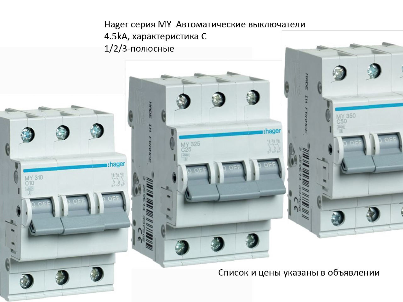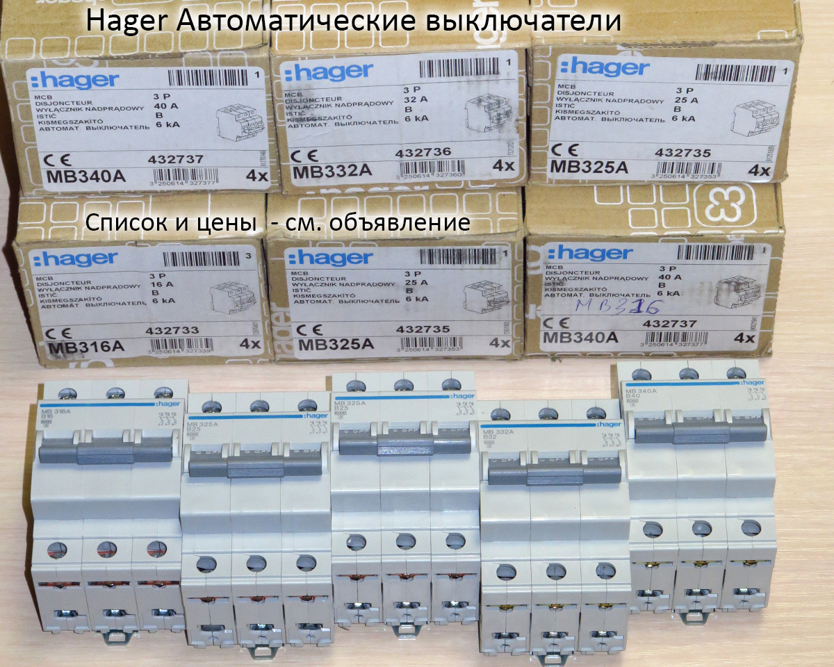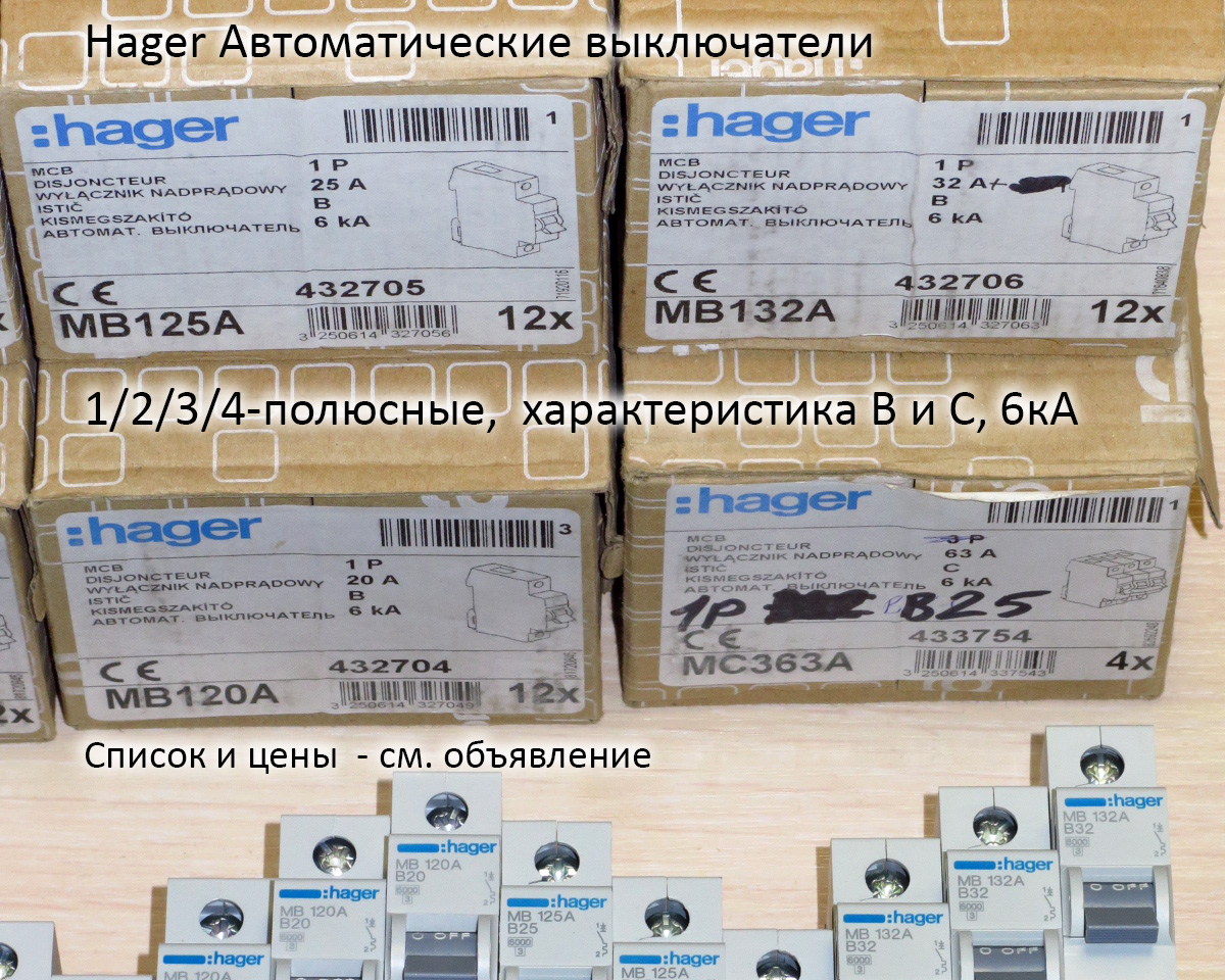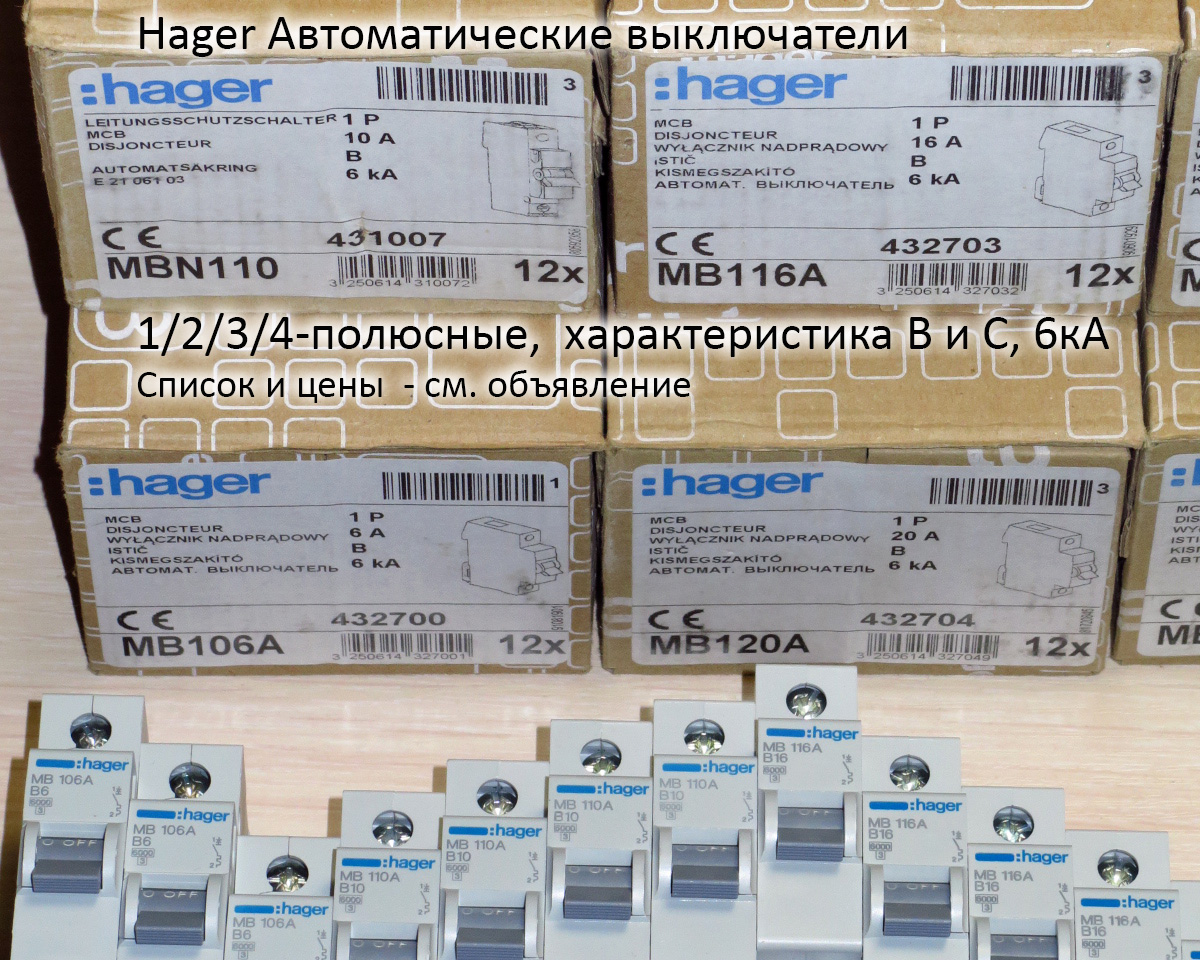 Возможно, вы не знаете Hager - это немецкая компания, специалистам она хорошо известна. Невысокая популярность в России = невысокие цены и отсутствие подделок. Распродажа остатков. Ассортимент и количество нужно выяснять - пишите, звоните. В остатках также разные автоматы других марок, в основном немецкие: Kopp, Siemens, Hager, ABL, General Electric, AEG, Eaton/Moeller немного ABB и Lergand. Цены на распродаже дешевле, чем на аналогичную продукцию ABB 200/400, Legrand DX3, Schnieder Acti9. Но было бы неправильно сравнивать с дешевыми сериями 200Home/RX3/ВД63/Easy9/Resi9, продажа которых в Европе запрещена - не проходят по стандартам ЕС.