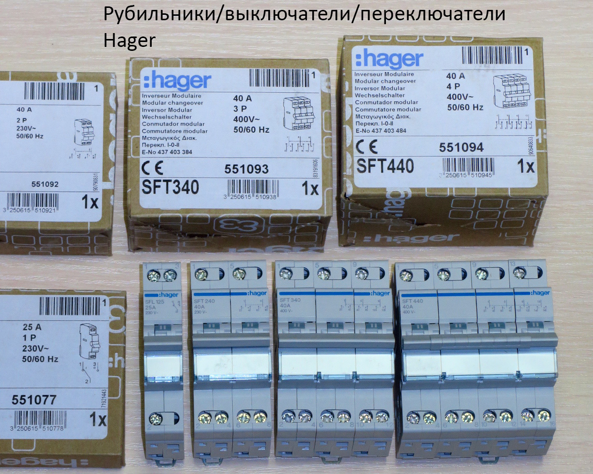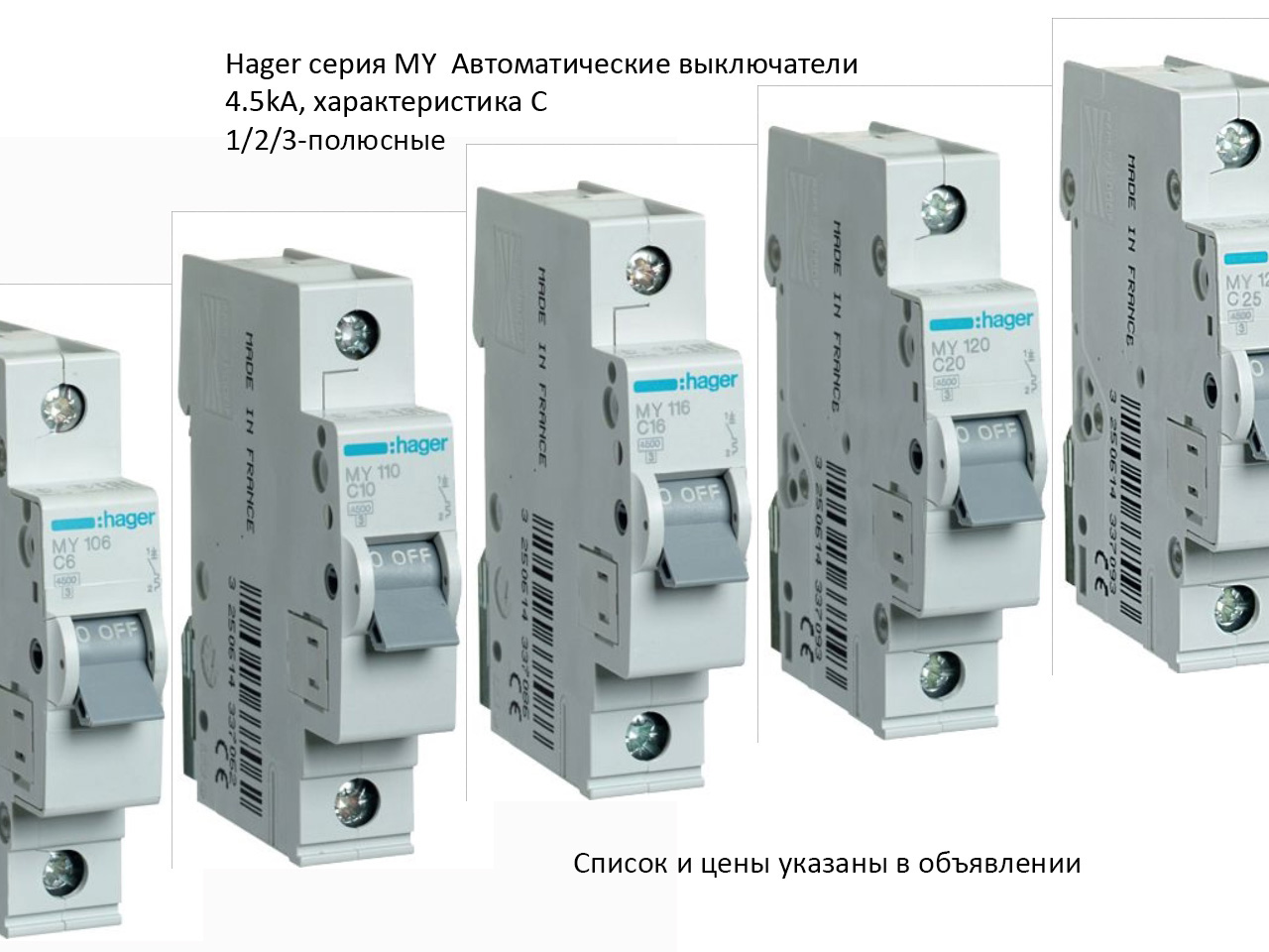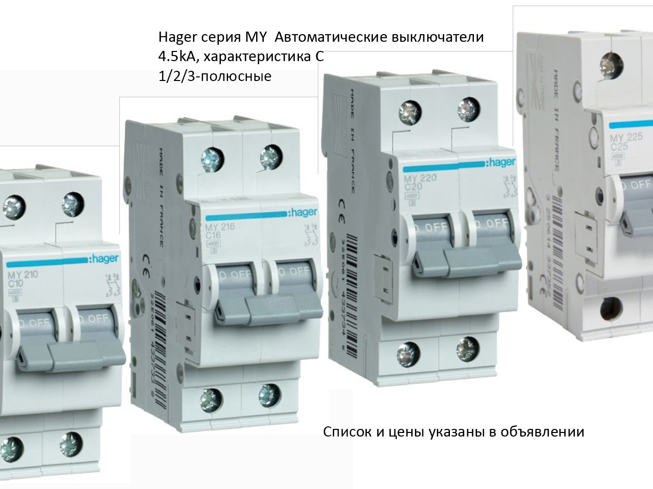 Возможно, вы не знаете Hager - это немецкая компания, специалистам она хорошо известна. Невысокая популярность в России = невысокие цены и отсутствие подделок. Распродажа остатков. Ассортимент и количество нужно выяснять - пишите, звоните. В остатках также разные автоматы других марок, в основном немецкие: Kopp, Siemens, Hager, ABL, General Electric, AEG, Eaton/Moeller немного ABB и Lergand. Цены на распродаже дешевле, чем на аналогичную продукцию ABB 200/400, Legrand DX3, Schnieder Acti9. Но было бы неправильно сравнивать с дешевыми сериями 200Home/RX3/ВД63/Easy9/Resi9, продажа которых в Европе запрещена - не проходят по стандартам ЕС.