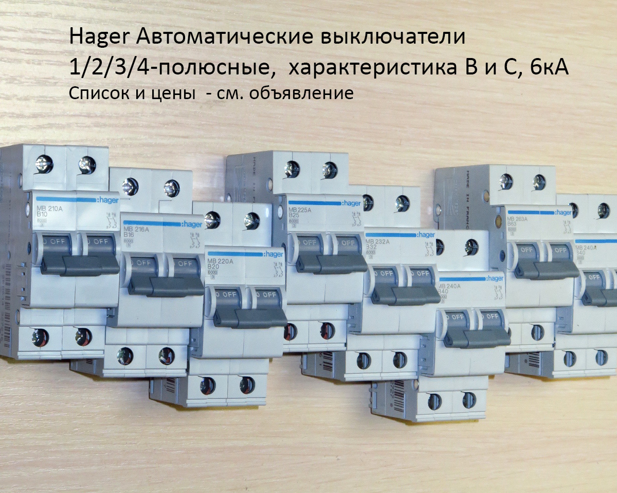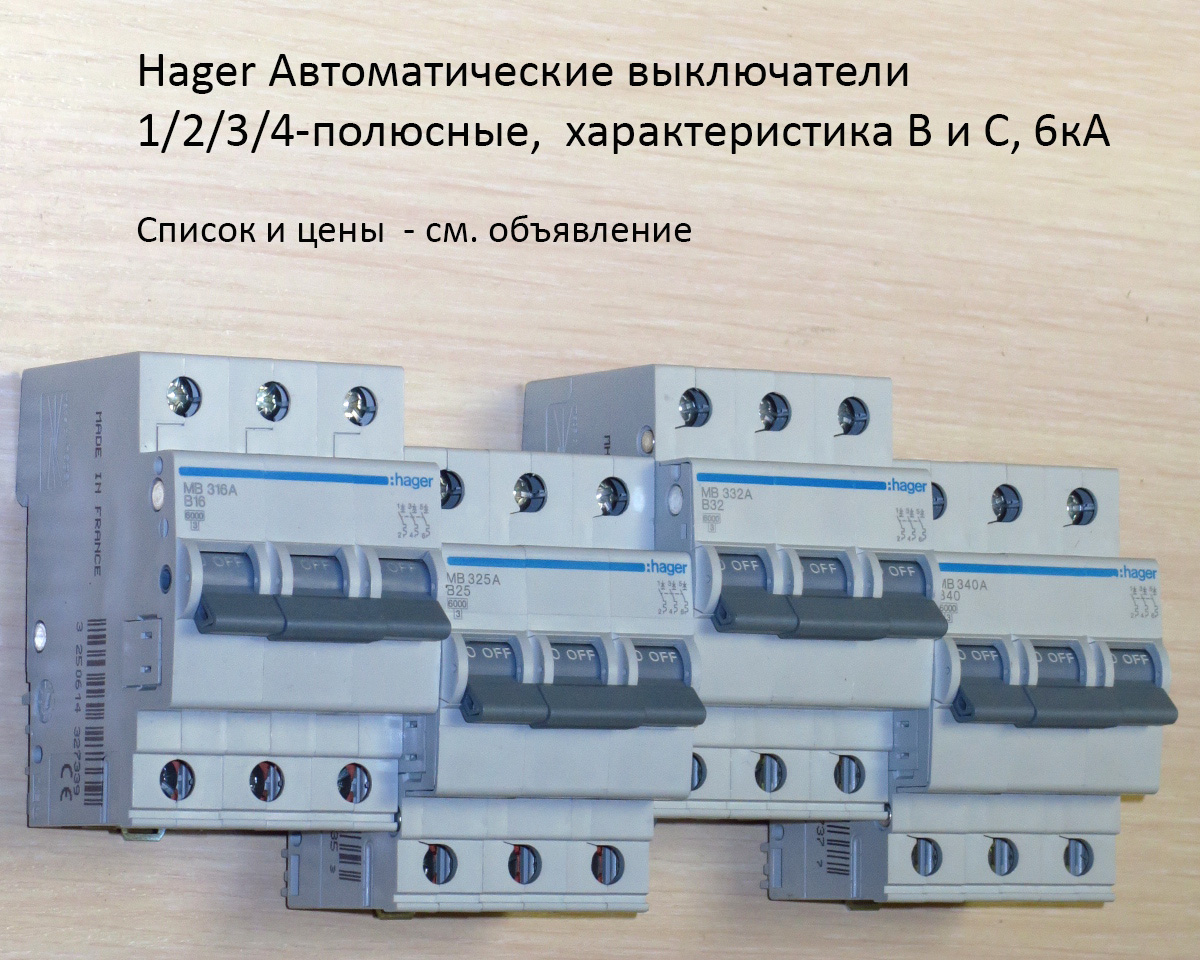Продаю качественные автоматические выключатели немецкой марки Hager серия MB 6kA(производство во Франции) Автоматы с номиналами от 6 до 63А, 1-полюсные, 2-пол, 3-пол., 4-пол. Также есть автоматы с характеристиками С и В, Icu 6kA и 4.5кА. Новые, в фирменной упаковке. Оригинал. Продукцию Hager не подделывают, в отличие от АВВ, Легранд и Шнайдер.