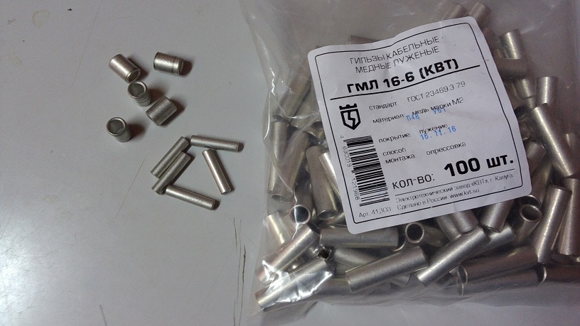 Гильзы ГСИ-2.5 для соединения встык проводов 2.5 мм2. 250 руб/уп.