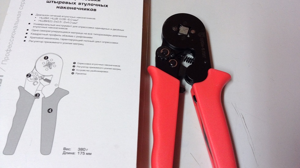Пресс-клещи для опрессовки изолированных наконечников и гильз (НКИ, НВИ, РППИМ, ГСИ, НШКИ). Обжимают наконечники на провода сечением 1.5-6.0 мм2. Храповой механизм, удобные рукоятки. Цена 600 руб.