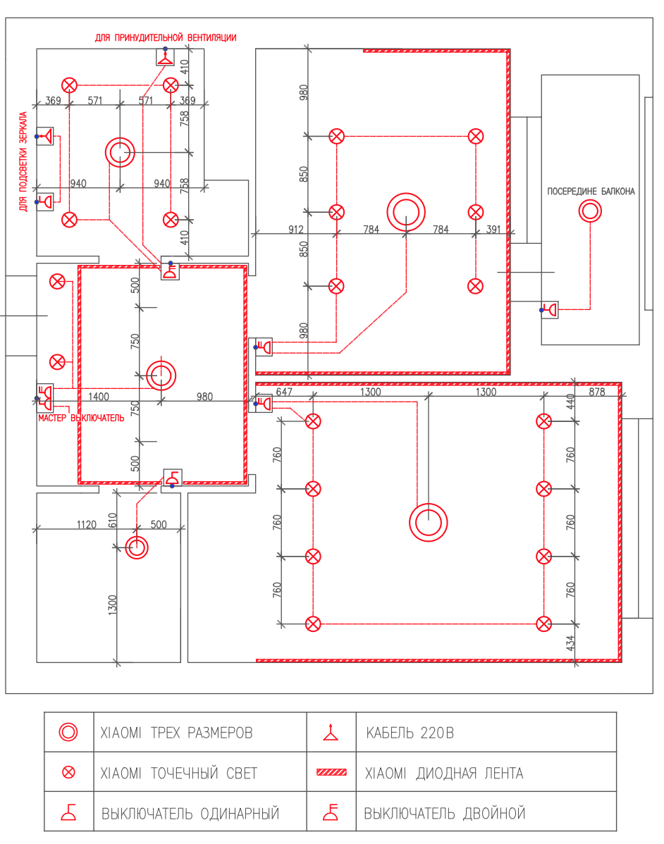 Требуется узнать стоимость квадратного метра и сроки на монтаж потолка из гипсокартона с небольшими отступами от стены (нишами) под диодную ленту в одной плоскости, 36 квадратных метров. Схема размещения и подключения света ниже.