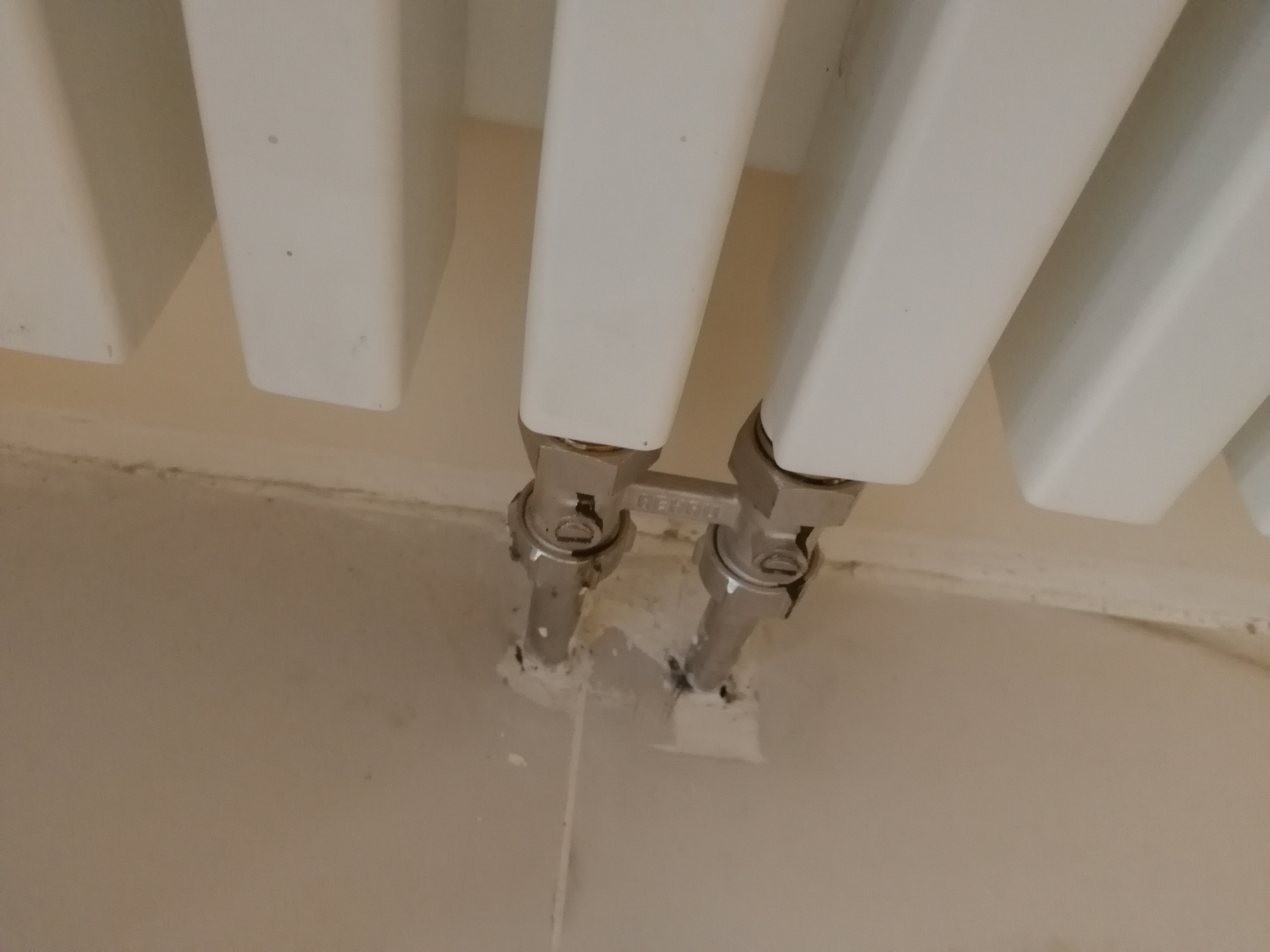 - Переделать плитку под радиатором - отопление заходит снизу, под плиткой теплый пол.