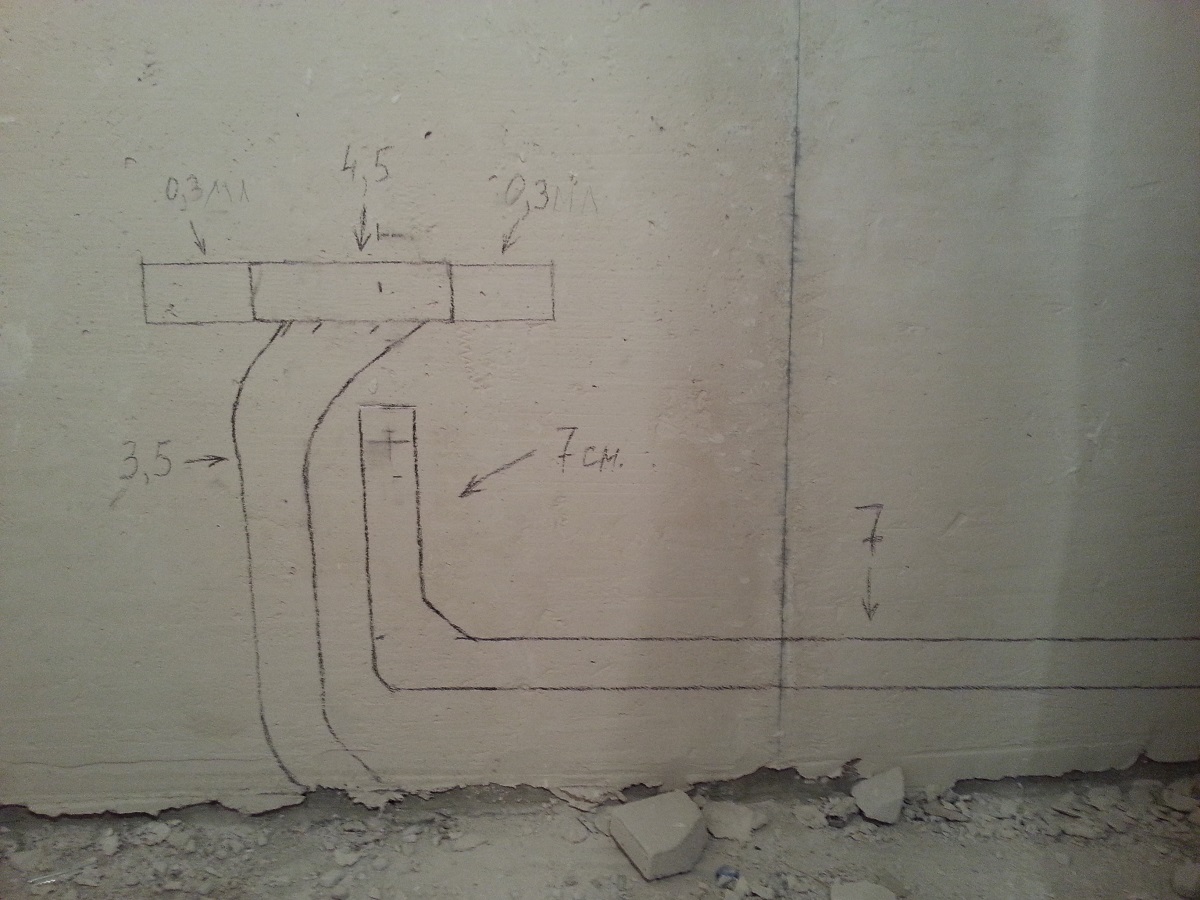 начинается работа с разметки радиаторов. На бардак и мусор претензии не ко мне. Это не мои художества. Самому неприятно. Но недобросовестных работников полно. Ладно отвлекся. Разметка ставится лазерным нивелиром. По всей квартире радиаторы смонтированы на одном уровне. Далее монтаж трубопровода.
