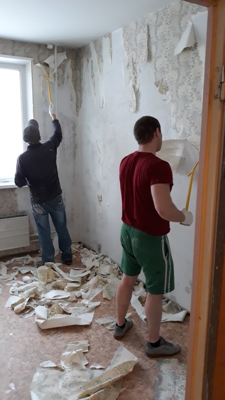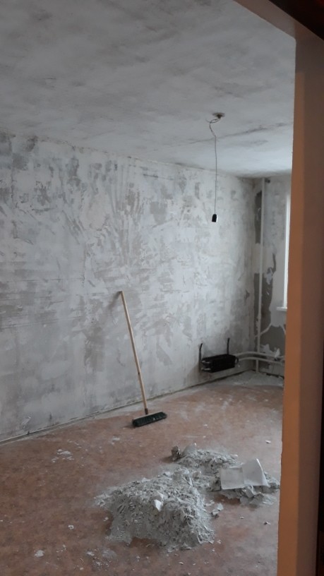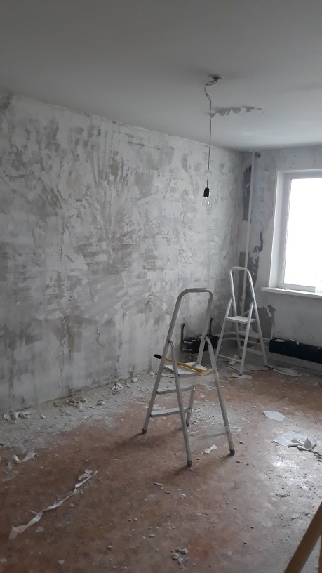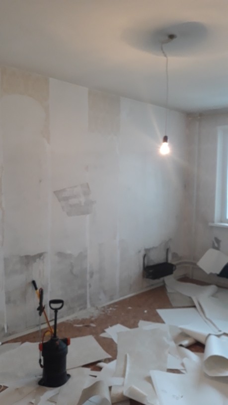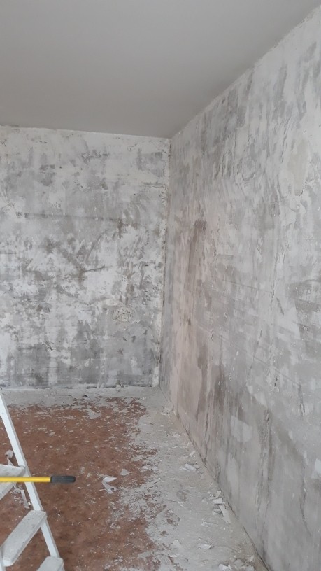 очистка стен от финишной шпаклевки по всей площади стен квартиры