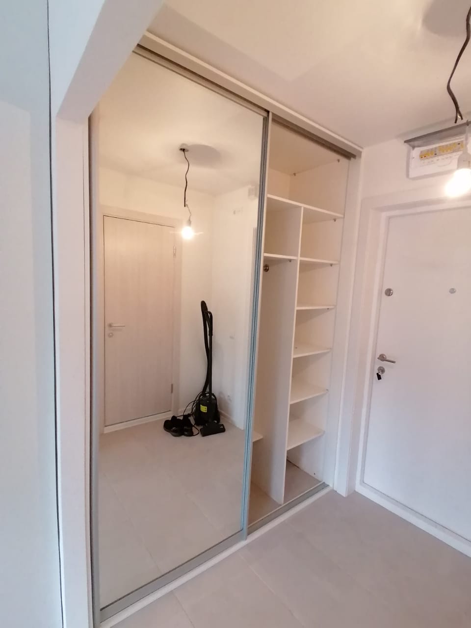 Тут вам и большой вместительный шкаф, и тумба под ТВ, распашной шкафчик и навесные полки (закрытые и открытые). Всё это выполнено по индивидуальному проекту, под размер помещения и в интересующих заказчика цветах и материалах.