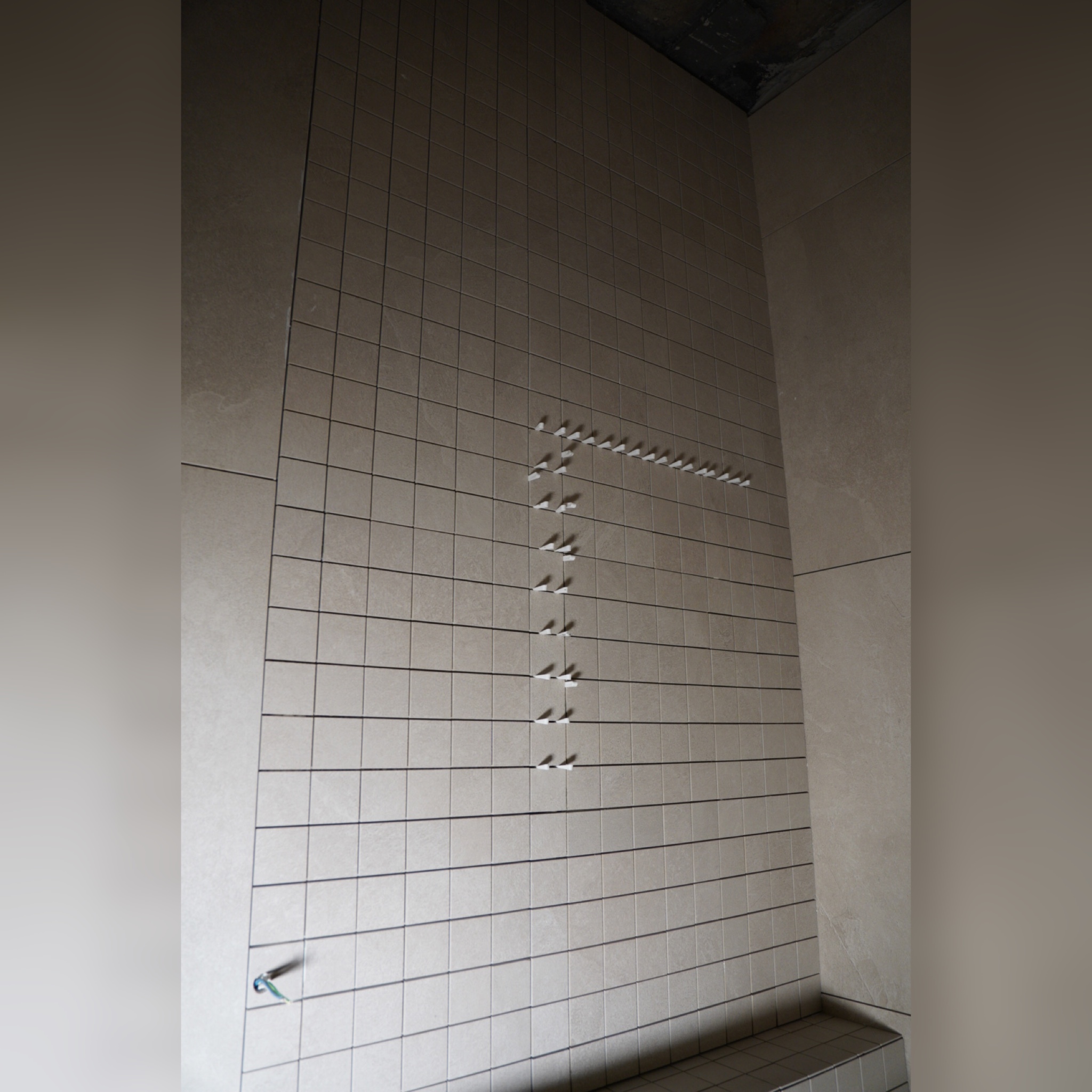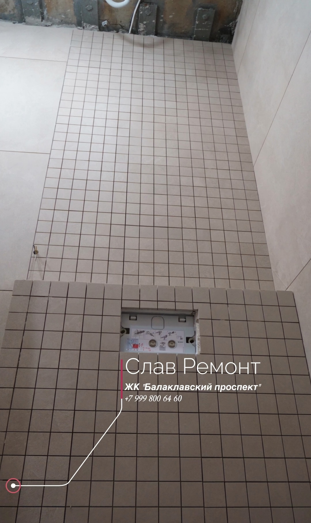 На фото: процесс облицовки инсталляционного каркаса мозаикой Kerama Marazzi. Мозайка отвратительного качества-разная толщина, разная геометрия.