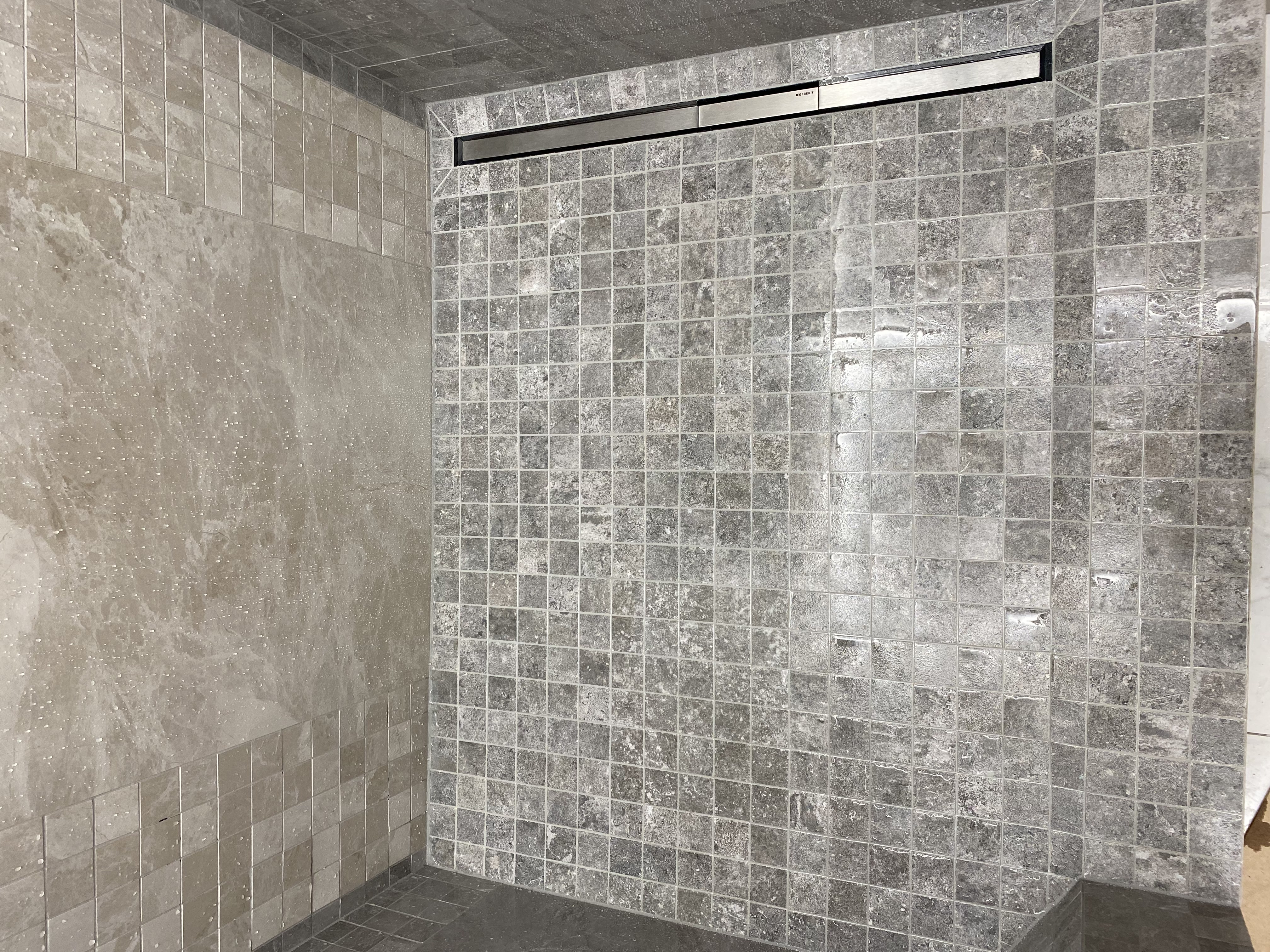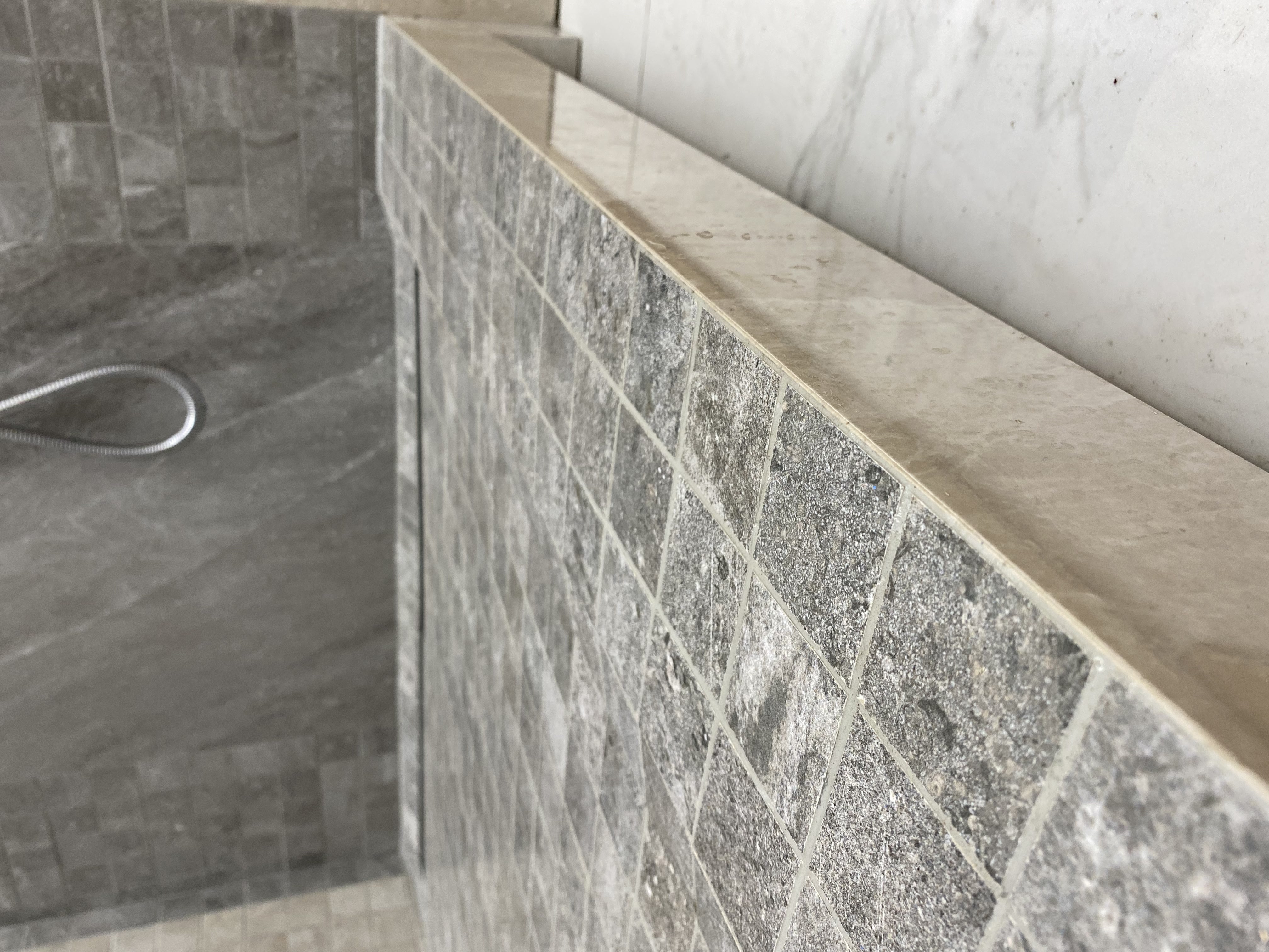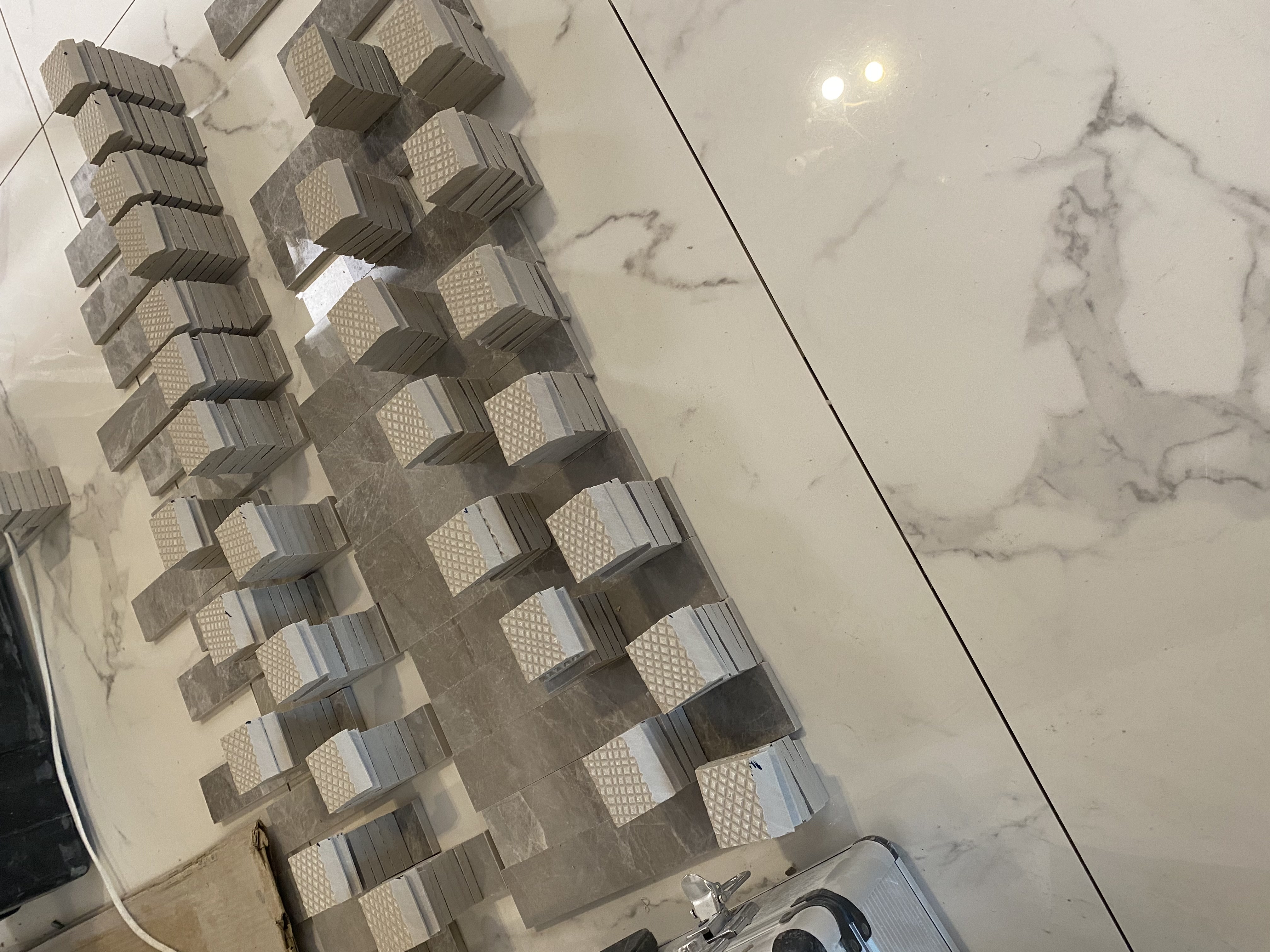 Что отличает специалиста от дилетанта? Умение маневрировать. В данном случае, мозайка по геометрии от производителя-полное говно. Было решено нарезать вручную. Всё чётко. Всё получилось.