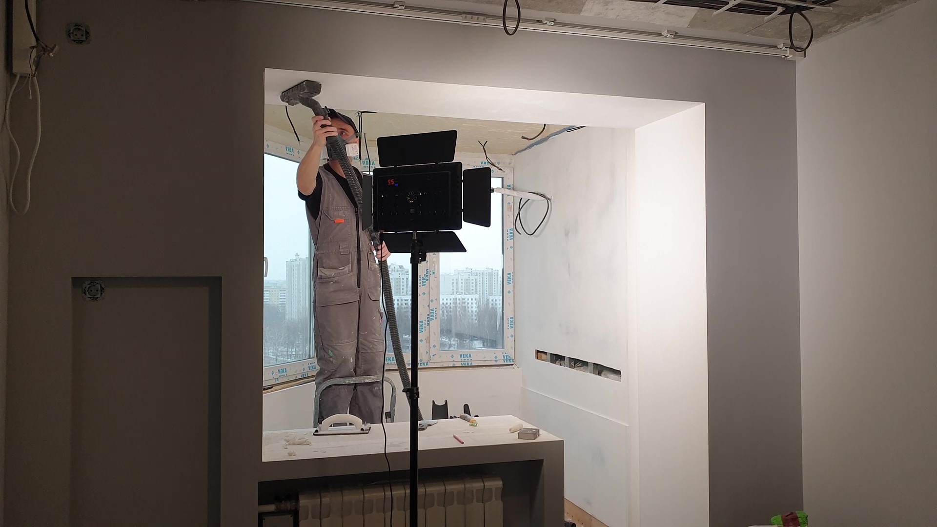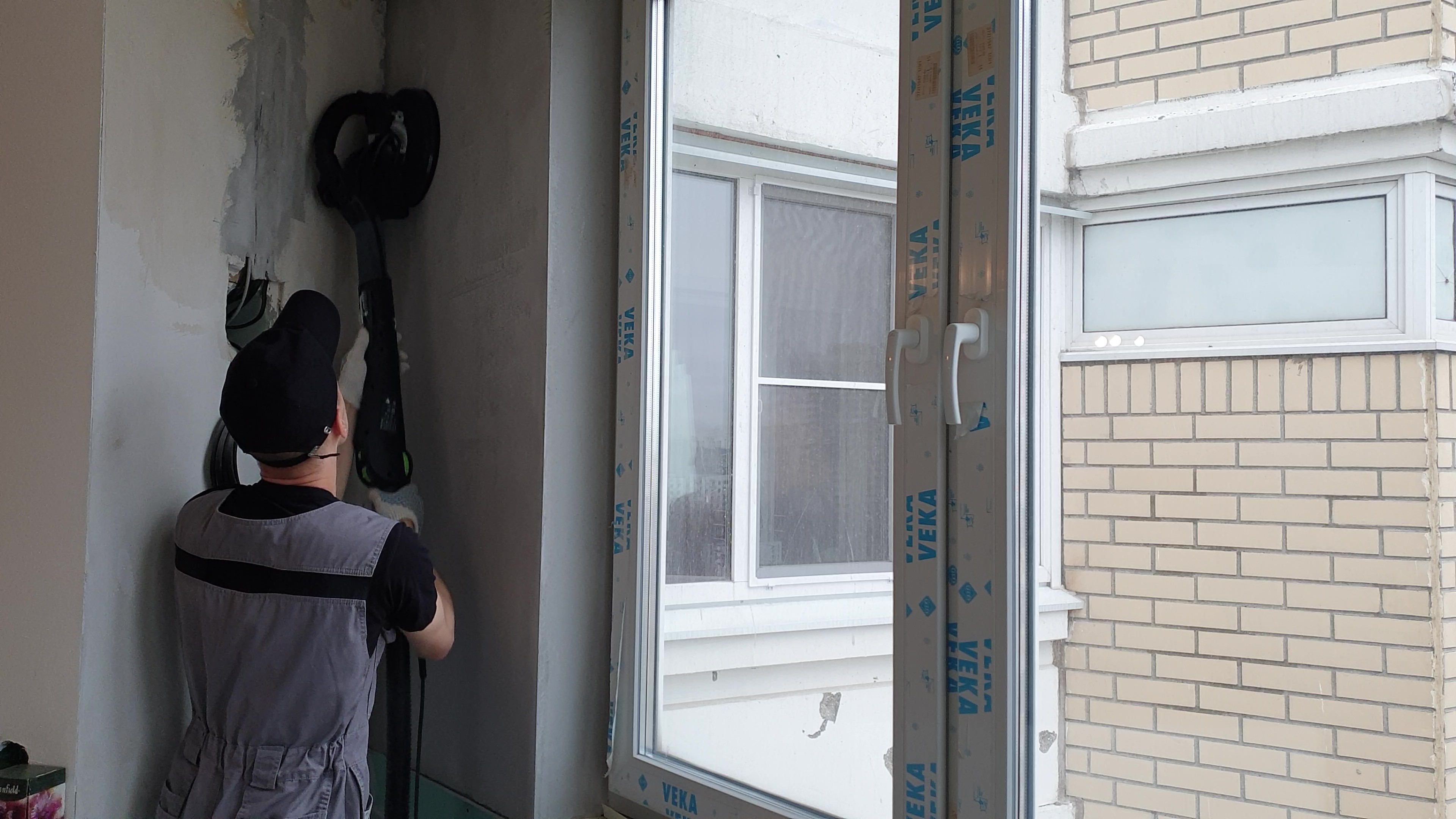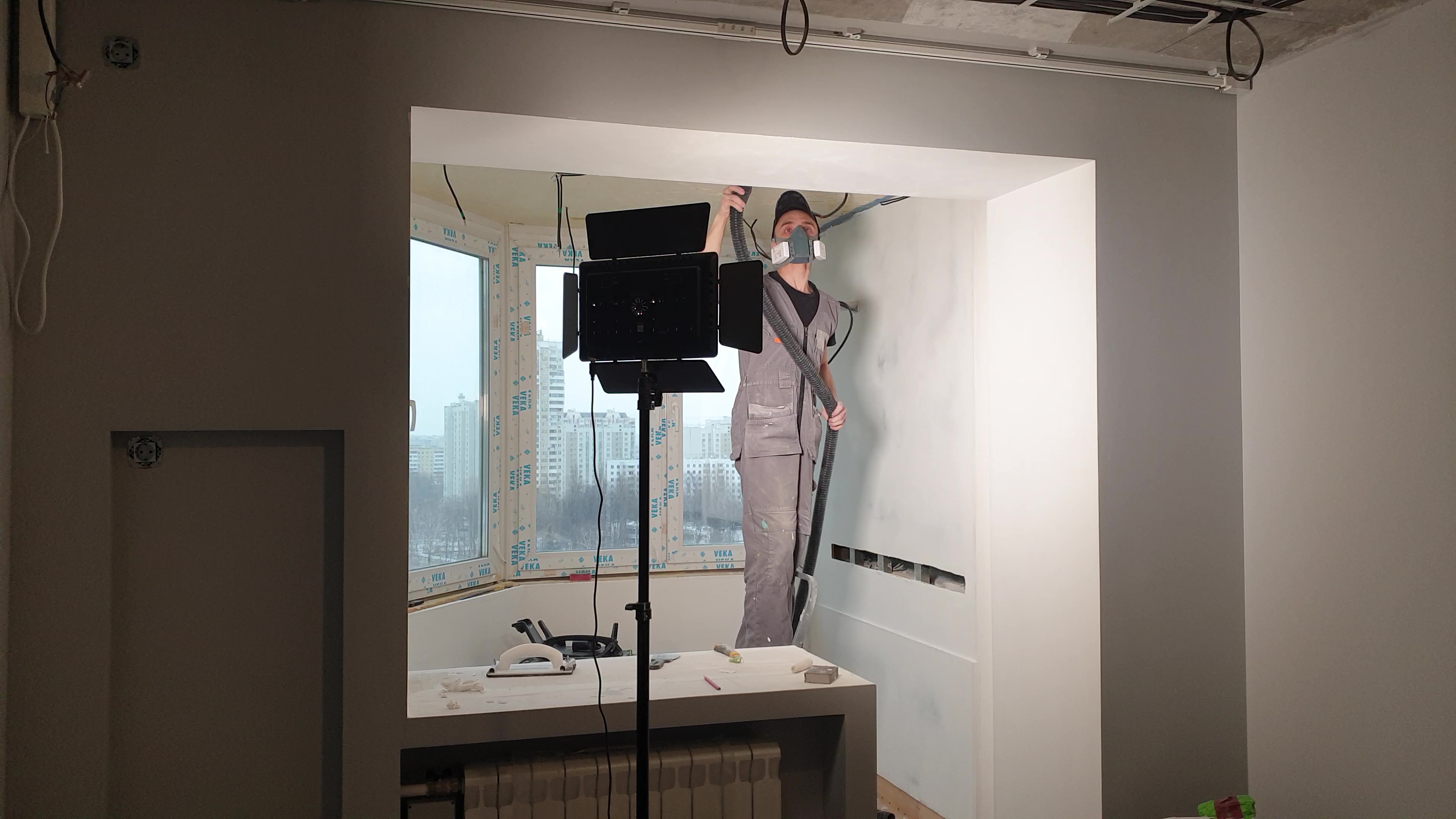 Далее шпатлевка всего балкона с аркой и подготовка к покраске.