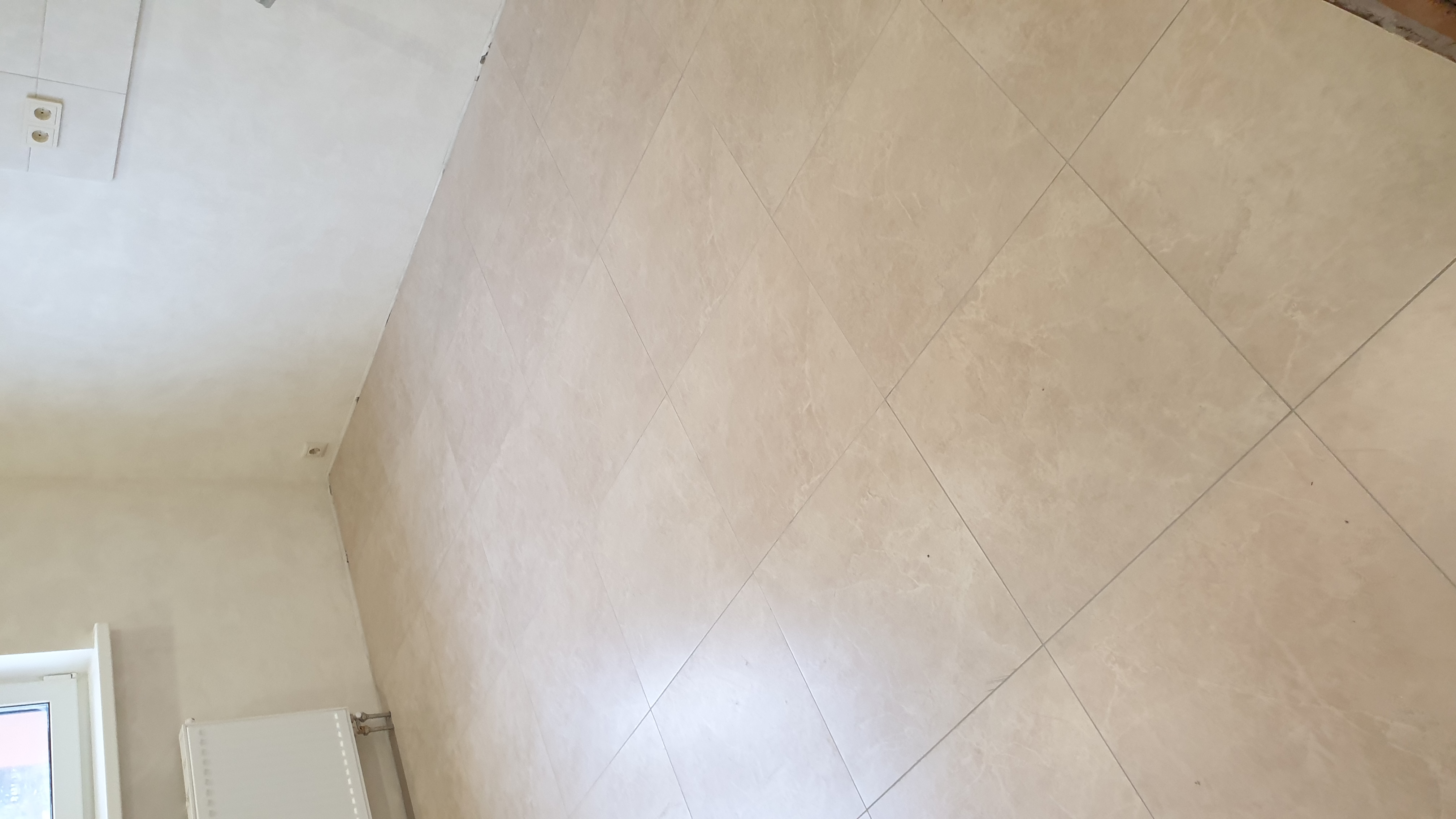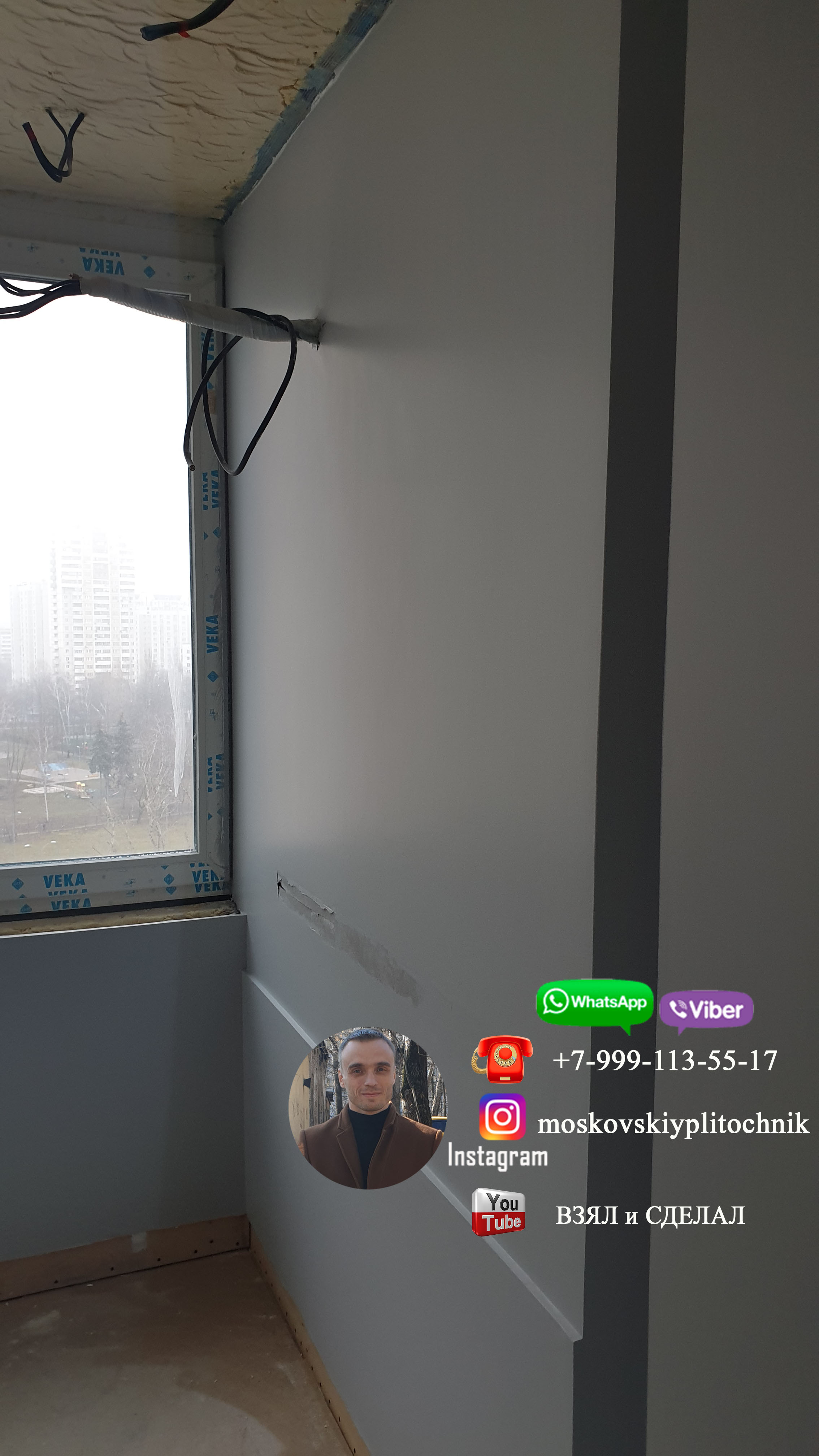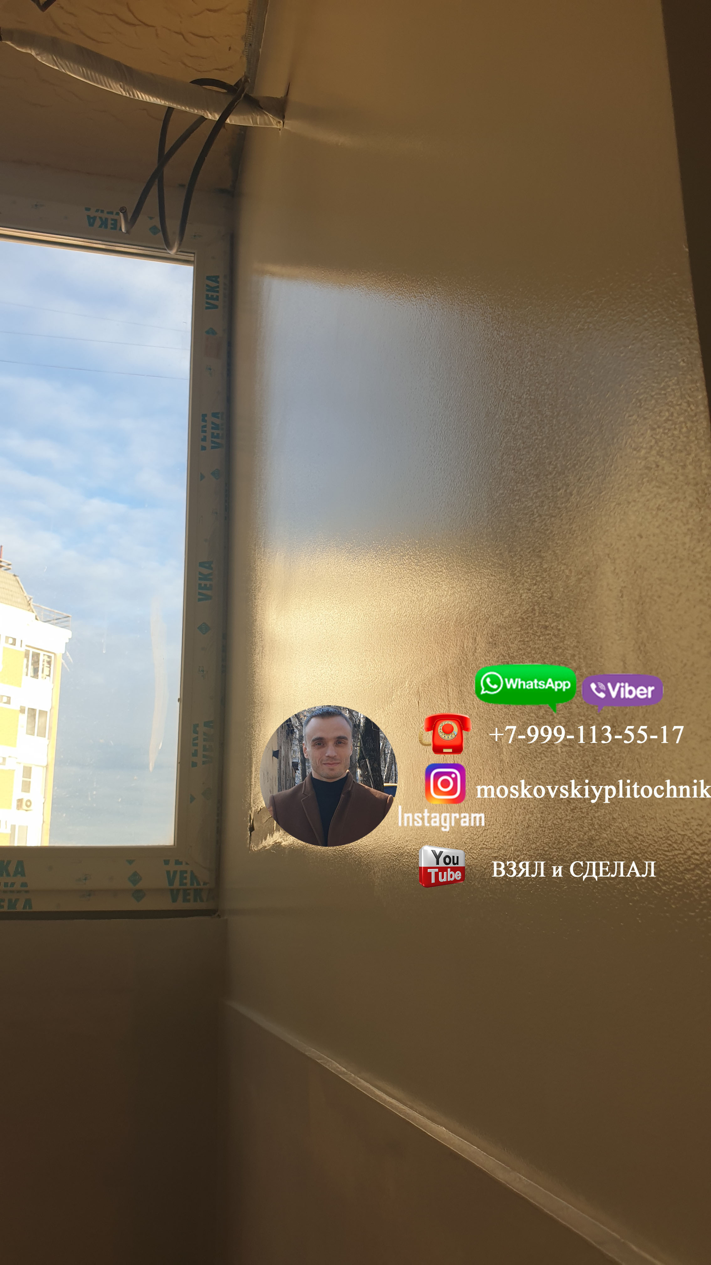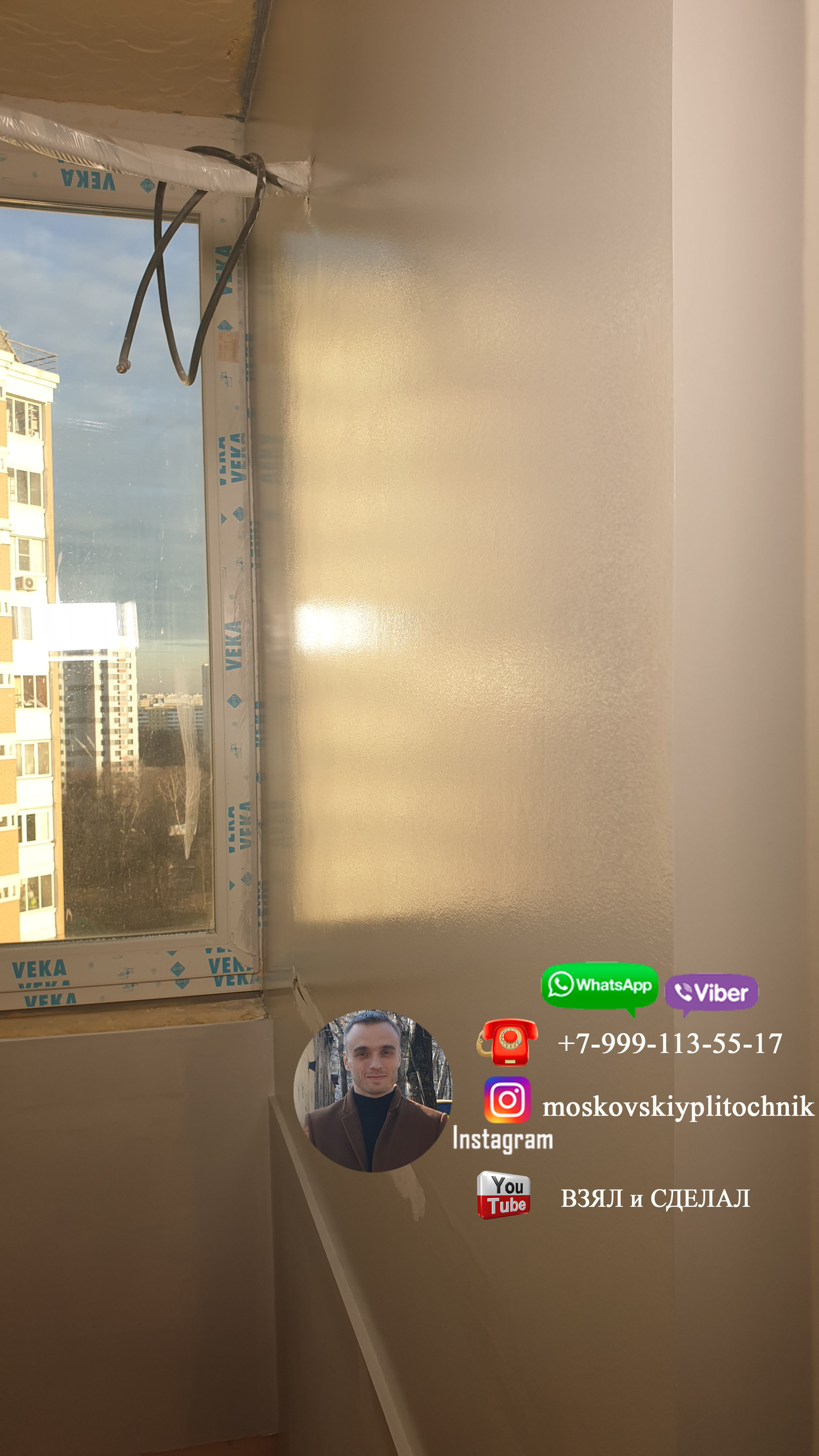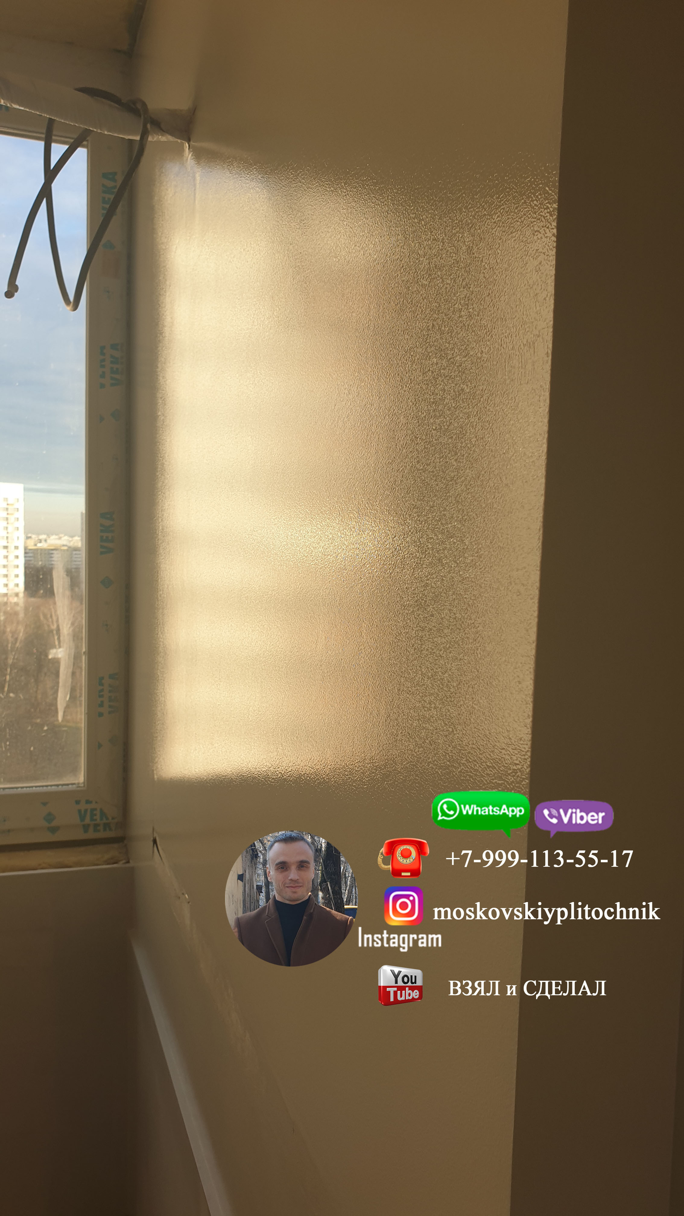 Приветствую всех кто смотрит мою страницу. Думаю в моменте нанесения стеклохолста ничего интересного нет, поэтому рассказывать про это не стану ( он поклеен на склей и отшпаклеван 2 раза ) . А в заключение истории с подготовкой балкона к покраске и его окраски, а так же исправления окраски, выкладываю фото конечного результата своей работы. Еще раз хочу сказать, что работа плиточника не ограничивается только укладкой плитки. Сан.узел - это ответственность одного мастера. Плиточник это и сантехник, электрик, маляр и другие направления, которые встречаются в работе с сан.узлами. Именно плиточник отвечает за конечный результат в сан.узле, соответственно, он сам все готовит под себя!!! Лично для меня не составило труда подготовить и покрасить балкон, да и в придачу исправить чужую ошибку. Ну а в целом, о результате судите сами: