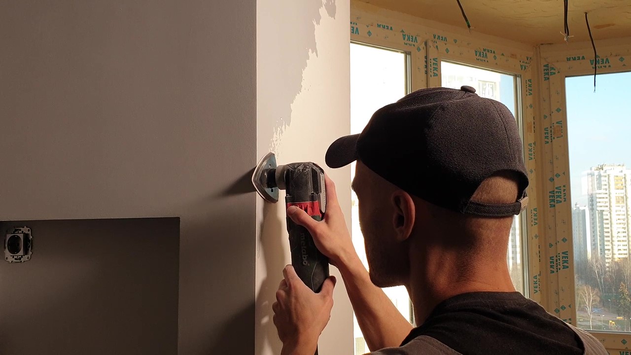 Все внешние углы армируем пластиковыми малярными уголками.