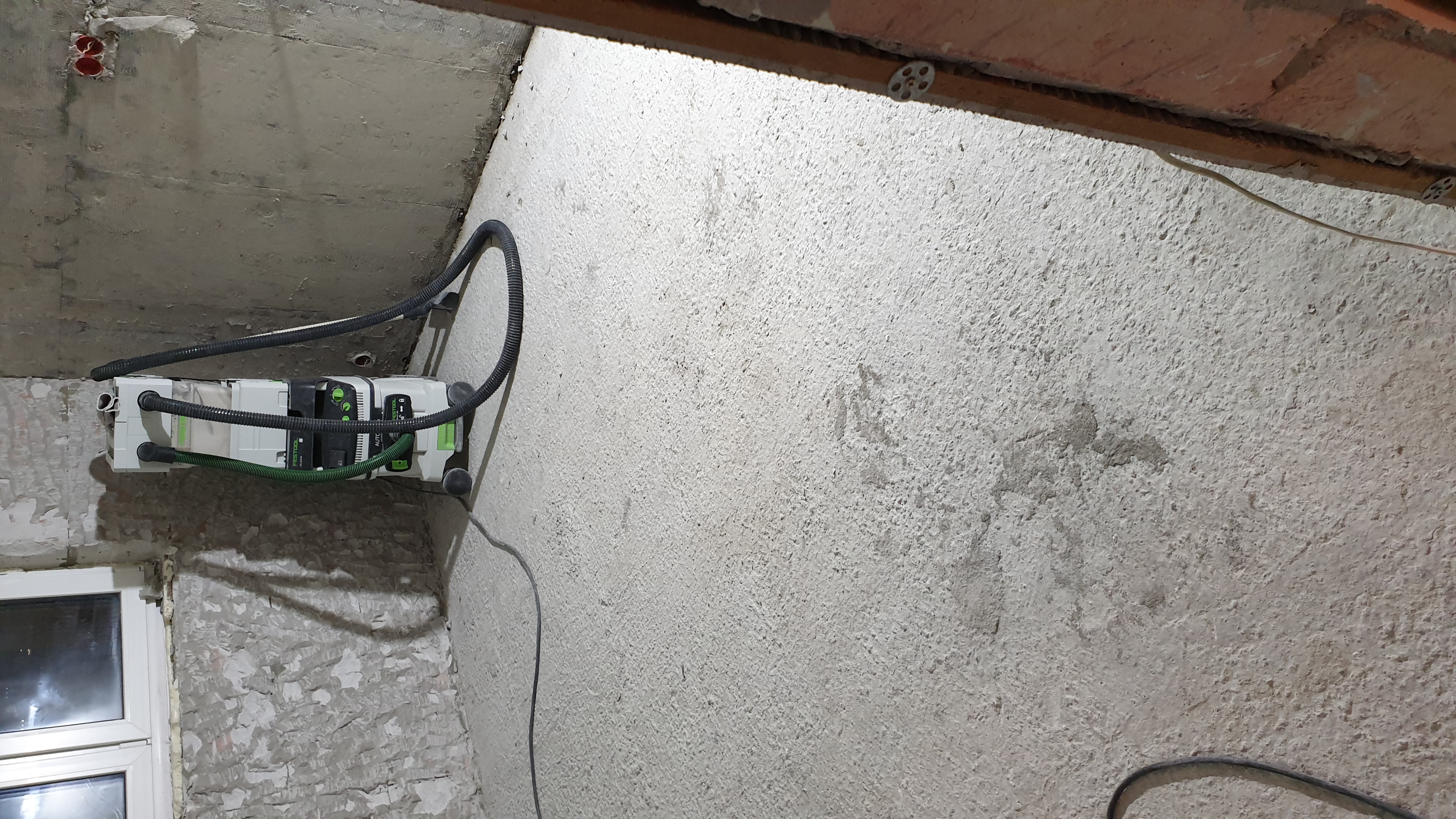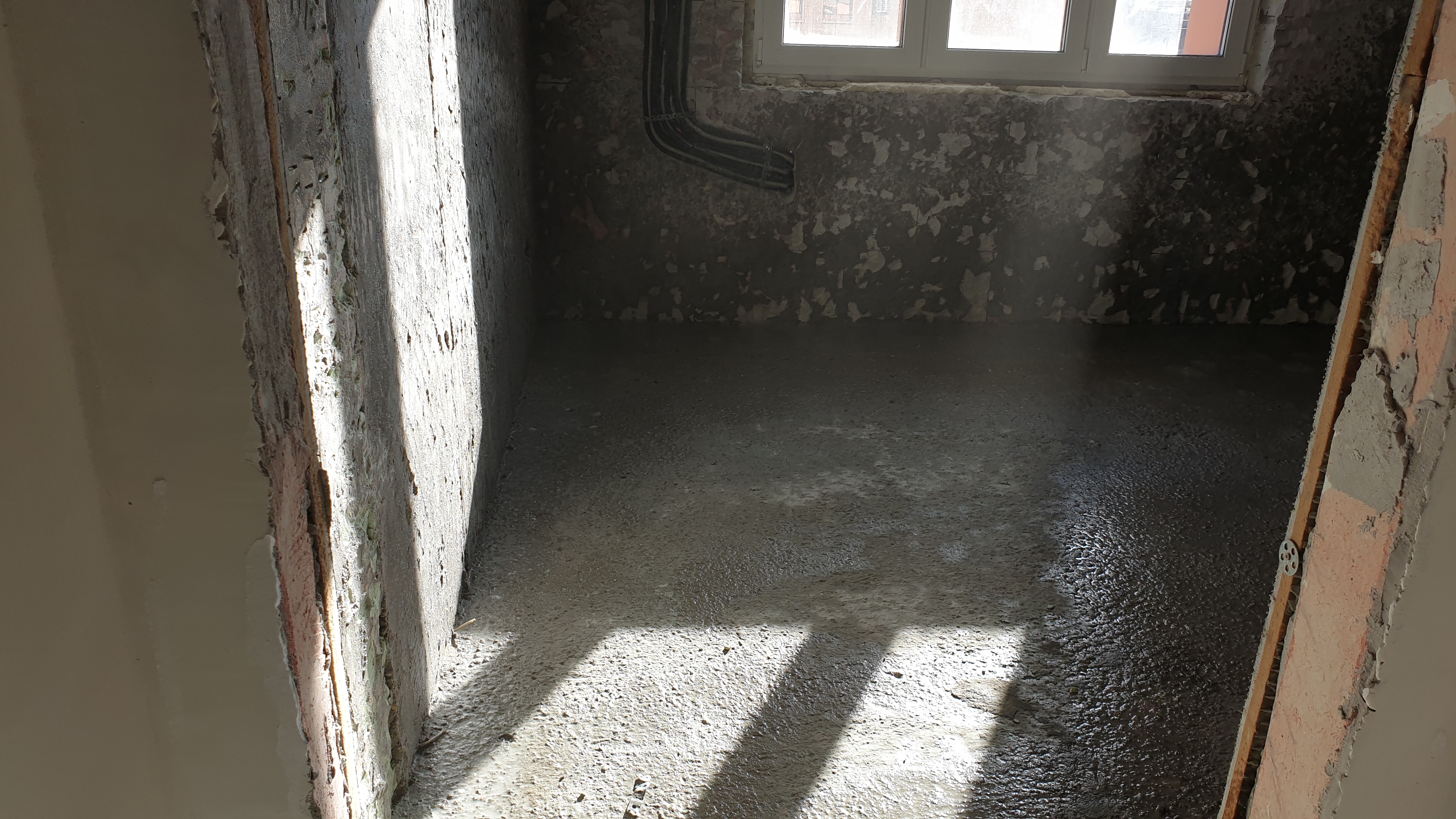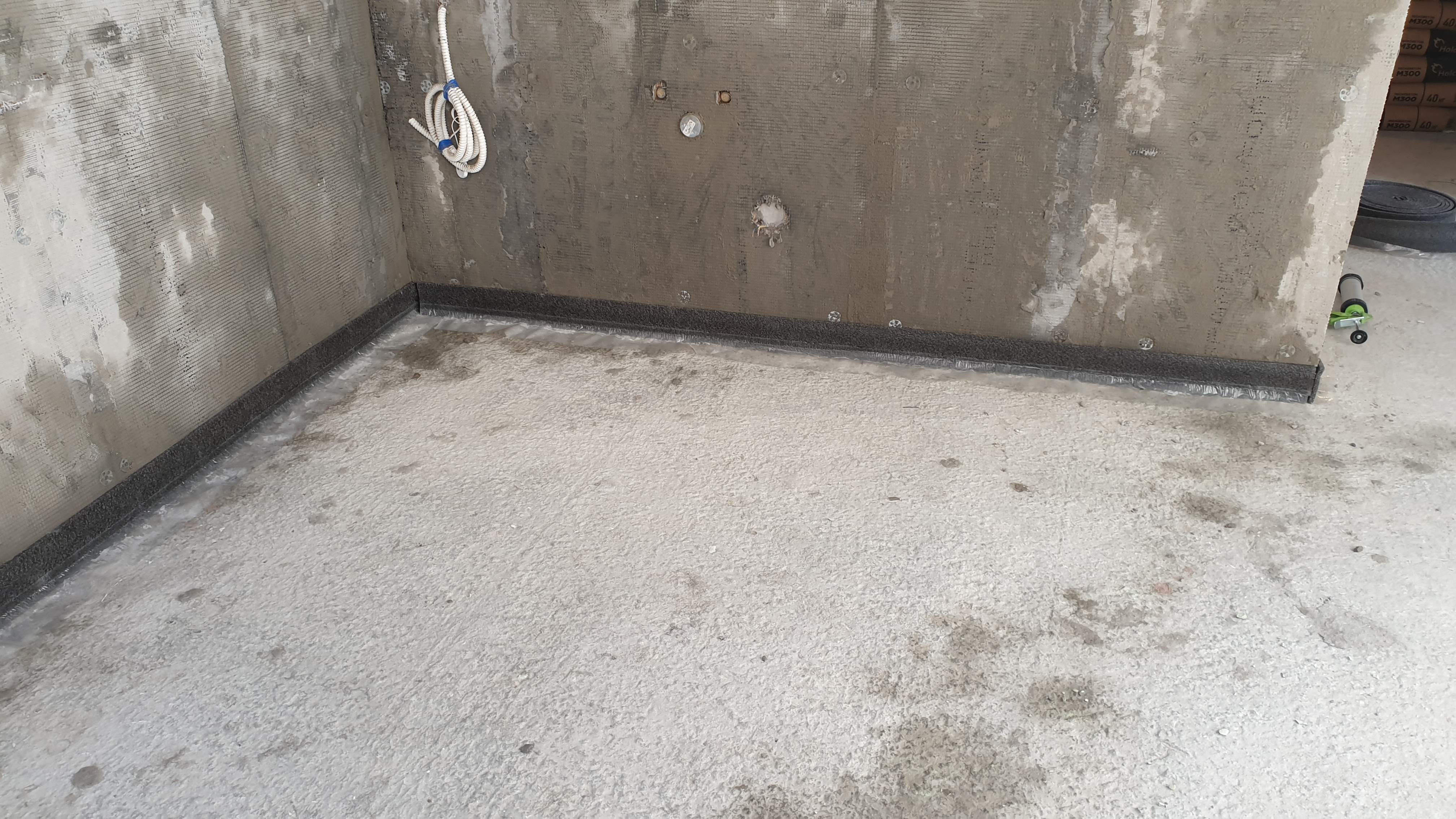 На данном обьекте, выравнивающую стяжку я сделал КОНТАКТНОЙ, предварительно подготовив основание и периметр стен: