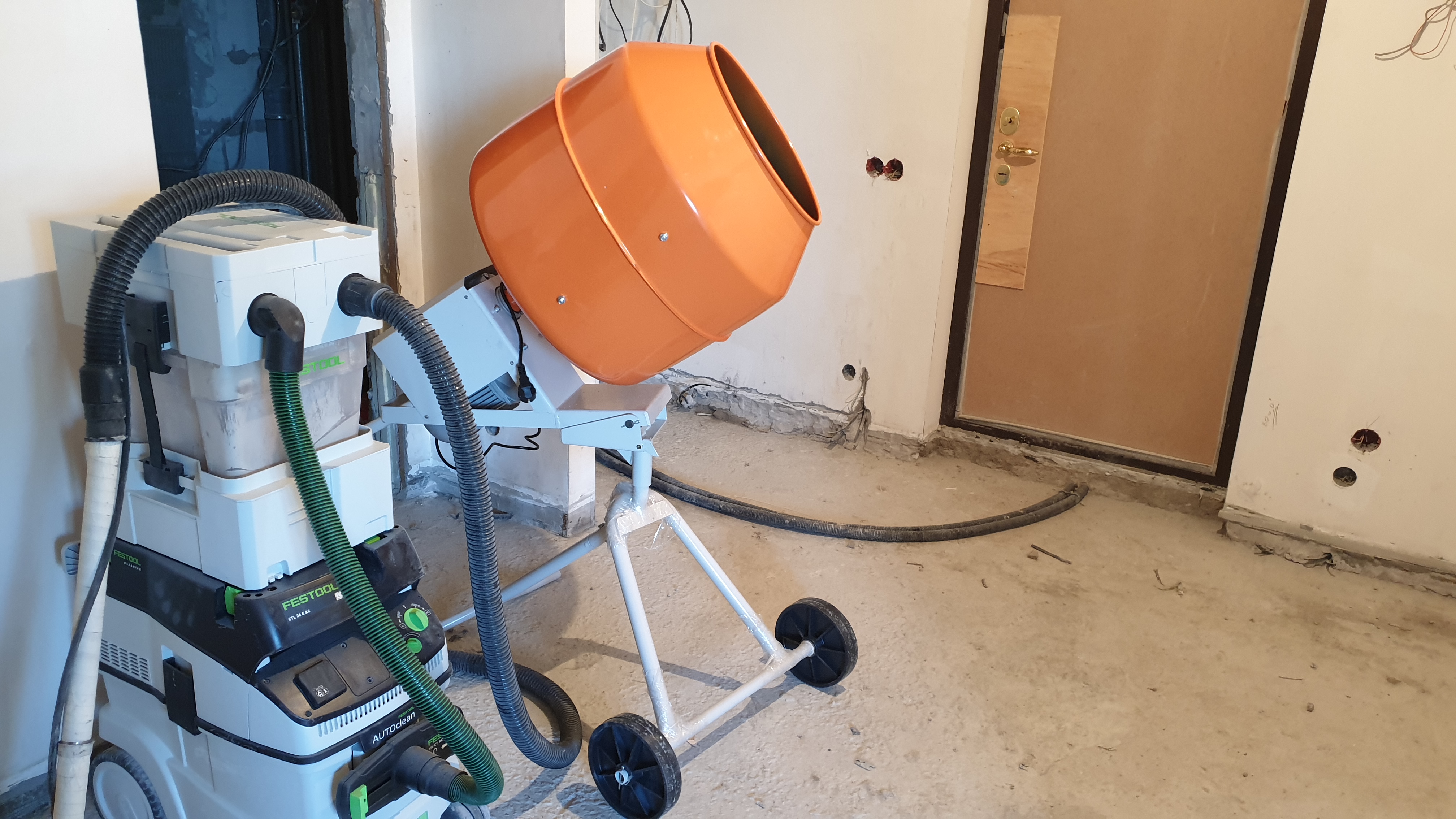 Бетонное основание ( от застройщика ) не соответствовало желаемым требованиям. Да и после измерения горизонта ( был выявлен перепад 5,4 см. по всей площади квартиры ) я решил первым делом выровнять пол.