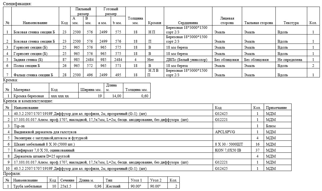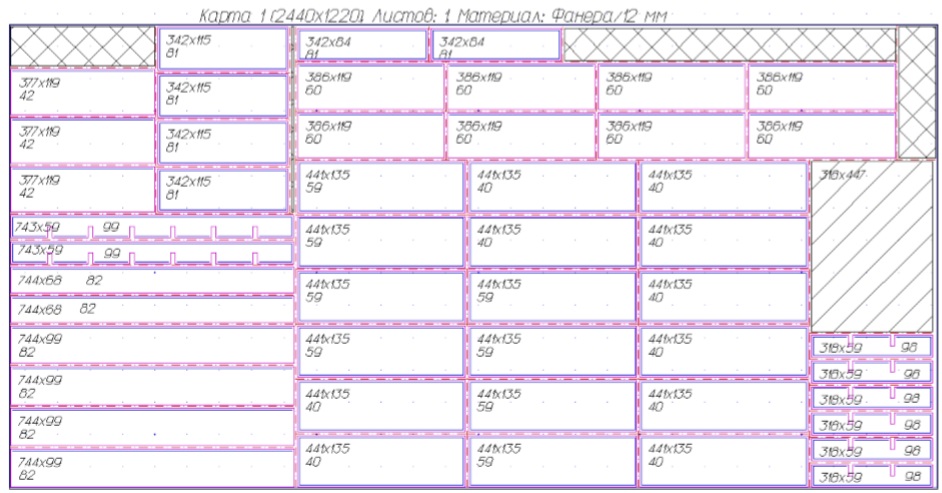 - карты раскроя с картами кромления;