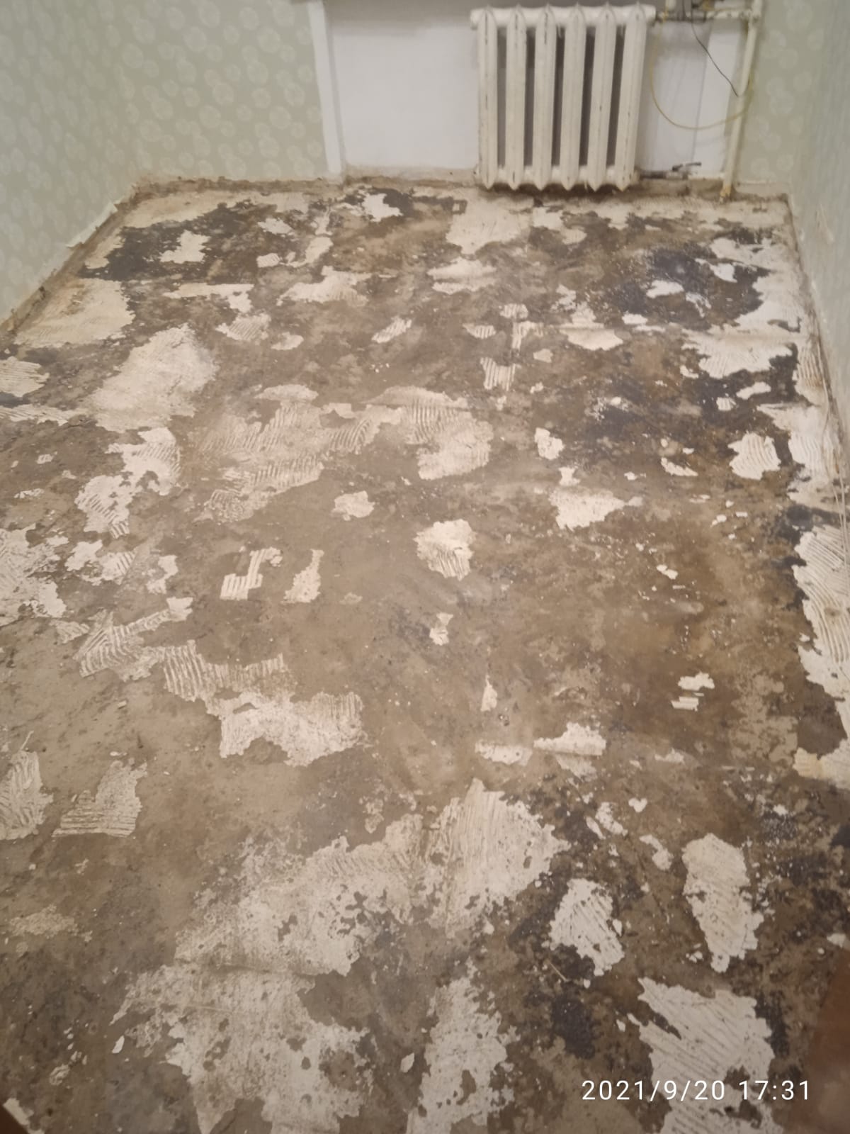 Требуется очистить стяжку от клея после демонтажа паркета, площадь 32 кв