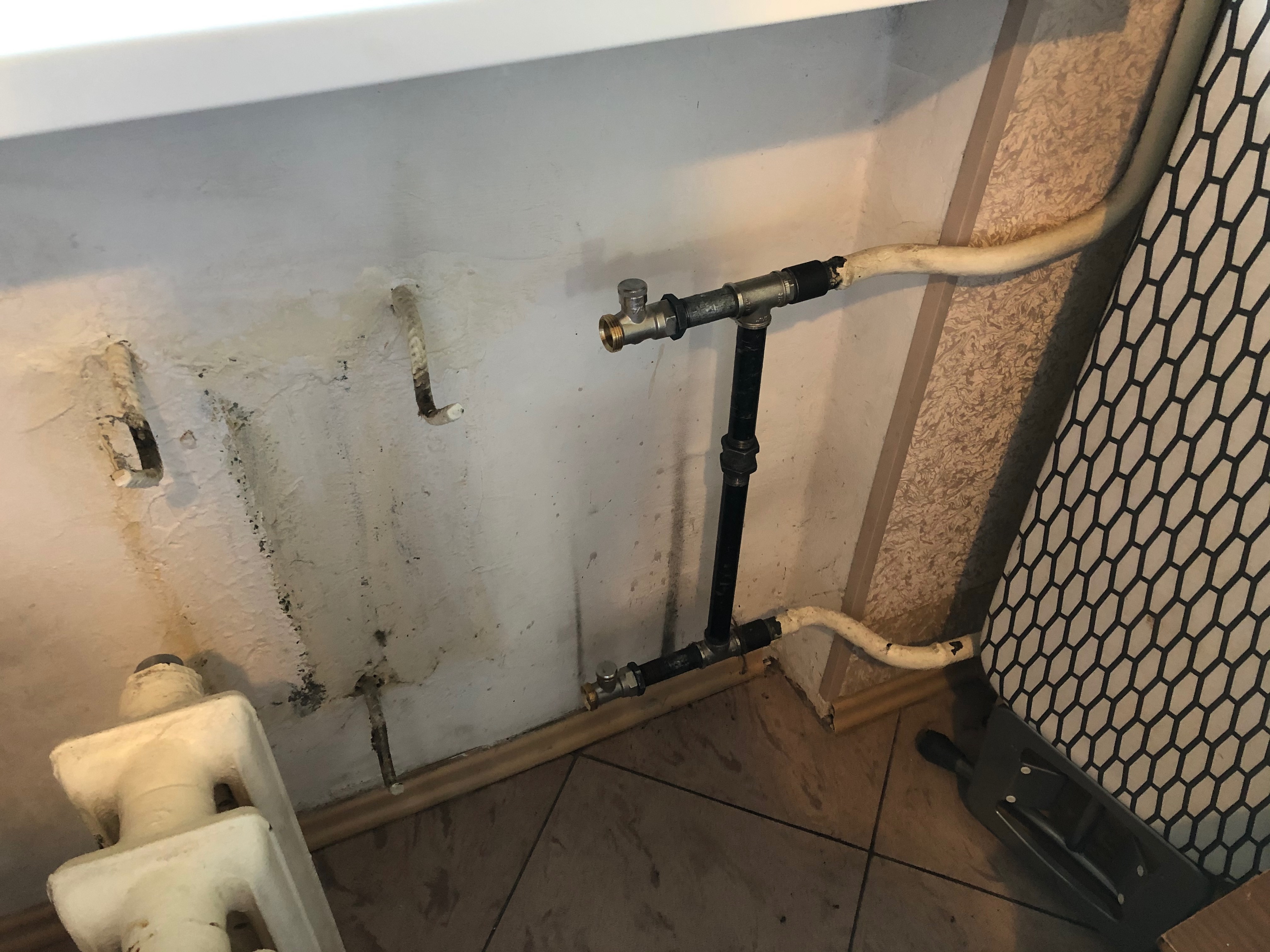 - Однотрубная система. Был сделан байпас и установлены краны, фитингами. Все криво, течет, с очень большим трудом стыкуется с радиаторами.