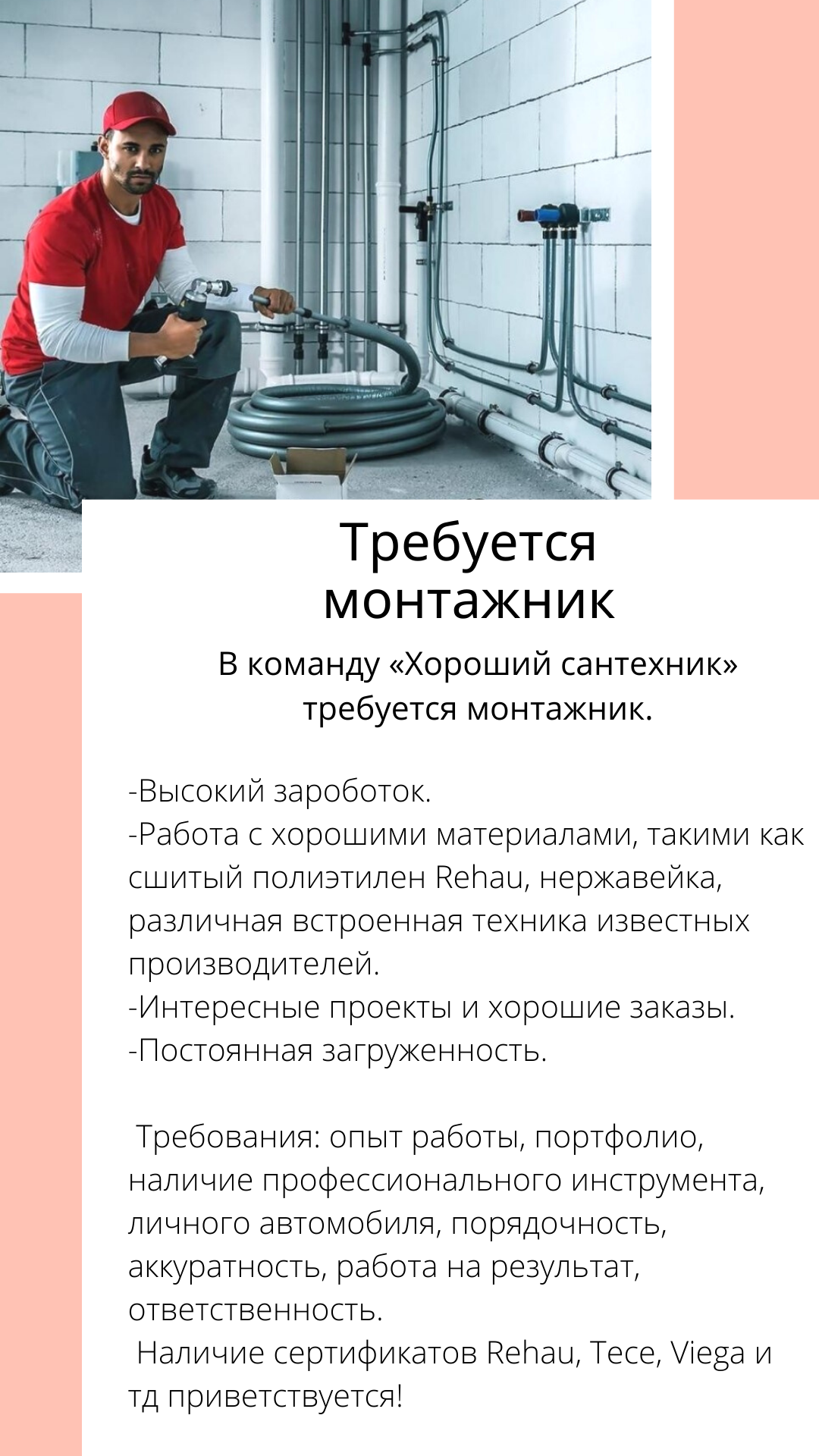 Наличие сертификатов Rehau, Tece, Viega и тд приветствуется!