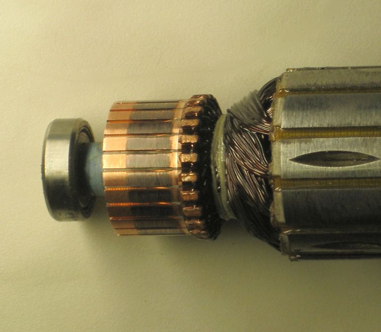 Теперь уже и немножко разберём. Проверим щёточный след: ровненько, не винтом, без перекатов и припухлостей, хорошо от петушков и до края, границы обозначены чётко, без прогаров, без обрывов на краю ламелей, ламели все одинаковые по цвету, без сбора разного на межламельном, пыли щёточной нет, след и не жирный, но и не бледный, без просветов, и не волнами… Ну и подсознательное какое-то согласие с правильностью вида коллектора… Коллектор – сердце: он скажет всё, родной. Собрать назад, включить-выключить пару-тройку раз, протереть вюртовским составом – и на выдачу, пусть поработает пока...