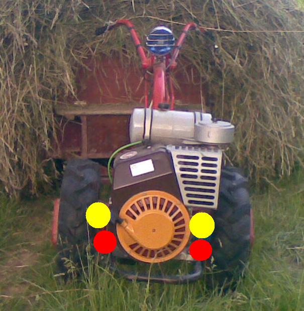 рамку использовать как крепление для стойки на которой будет фара впереди двигателя на уровне стартера, или сбоку слева чтобы не мешало заводке двигателя