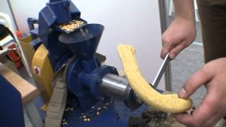 К этому аппарату нужно ещё и негра покупать , что бы всё время палочкой подталкивал предварительно измельчённую и смоченную смесь кукурузы и зерна . Не пойму почему колбаска чёрная вылазит . Кстати , на видео мотор расположен так , что его вполне может заменить мотоблок . Скорость выхода колбаски малая , а бензин стоит дорого ... я бы всё таки электромотор присандачил .