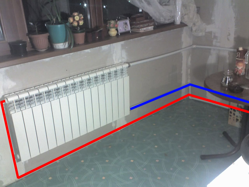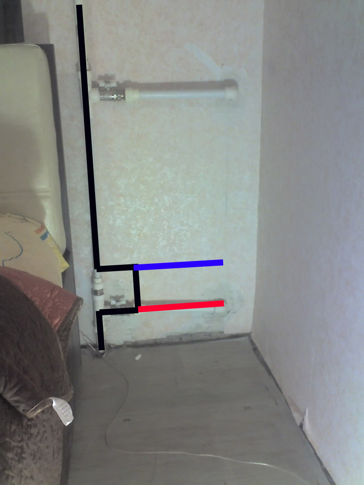 Здравствуйте. В процессе ремонта решили с женой перенести радиатор с одной стенки на противоположную - но это не интересно :) - гораздо интереснее как правильно подключить радиаторы - на данный момент получается, что греются первые секции и верх. После изучения темы - думаю нашёл правильное решение - прошу подтвердить, либо поправить его. Далее привожу схему и фотографии. 1 - схема комнаты: