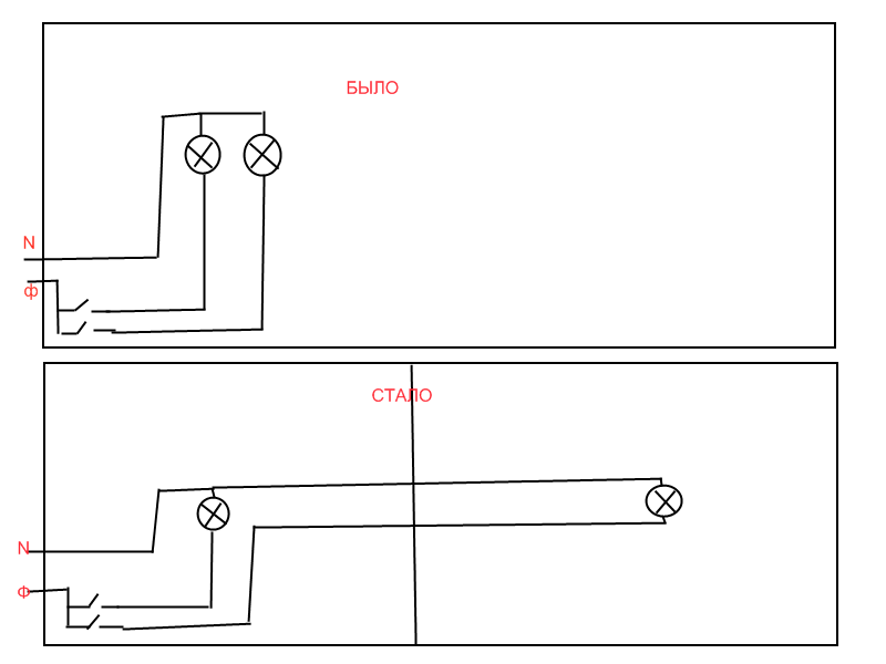 Хочется пока, до переделывания всей электрики в доме, сделать временный вариант. Пустить короб по потолку от того места, где старая люстра висела, в разные половины комнаты. Но так, чтобы включать/выключать эти две можно было бы независимо.