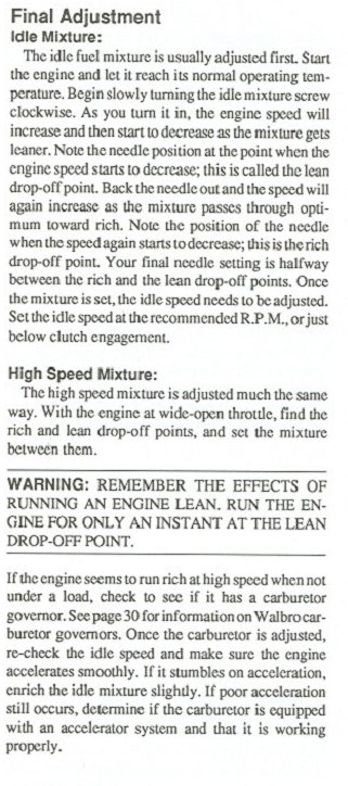 walbro кстати без тахометра описывает регулировки: