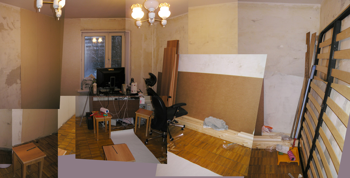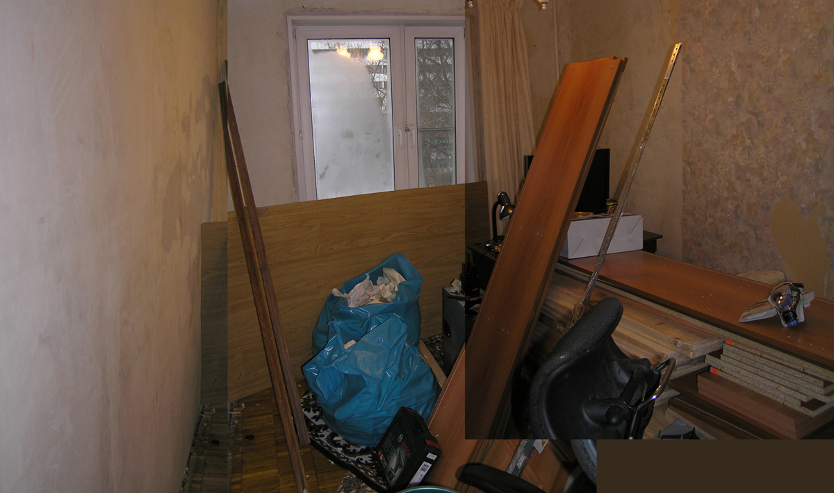Ремонт в традиционном понимании этого слова не планировался. В конце работы остались трещины на потолке, неровные стены, выбитые плитки в паркете – т.е. все то, что обычно убирается во время «ремонта».