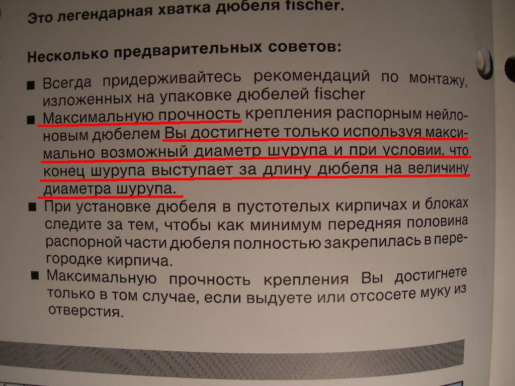 Проффэсор написал : Инструкция написана грамотно, но в дырку вместо дюбеля ее не затолкаешь. Дюбель неудачный!