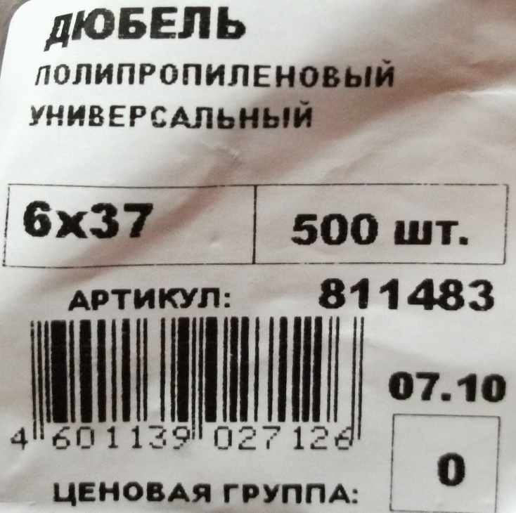 на фото другой дюбель, хоть и похожий по конструкции. Он 4-хперый, а обсудаемый - 3-хперый. И литьё на Вашей фотографии ужасное, с облоем. Не политэтилен ли? Обсуждаемый дюбель из полипропилена. Я вот недавно купил себе мешок (500 штук, эко-упаковка за 150 рублей в Мерлене) 6х37, без шляпок. На всю жизнь хватит теперь (основновные отверстия уж сделал, куда дотянулся.)