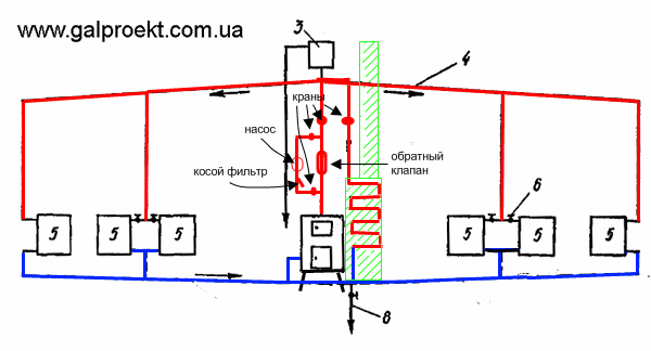 Палецкий написал : Обратка с двух сторон сойдется в самую нижнюю точку и от этой точки пойдет в верх сантиметров на 15-20 Г-образный патрубок в обратку котла