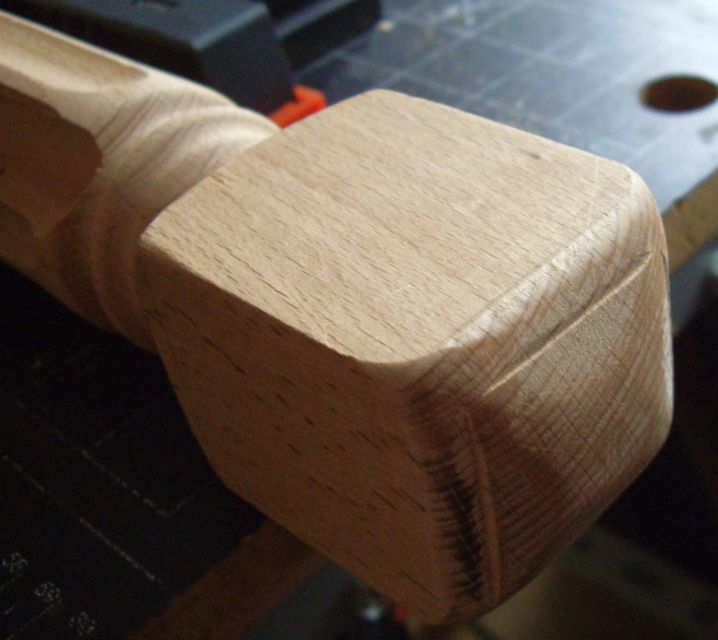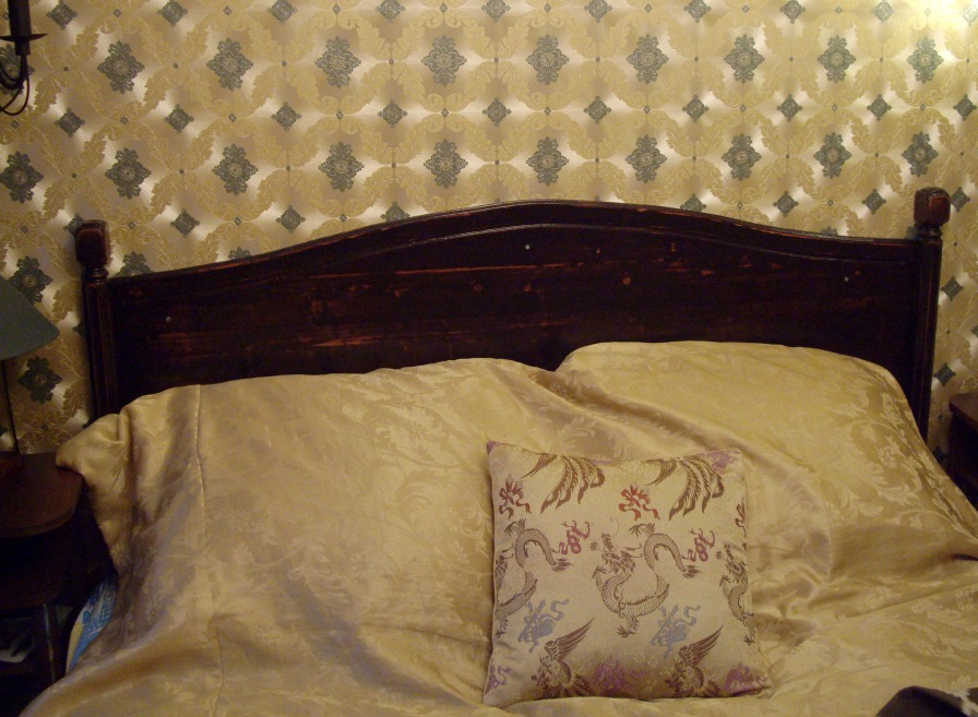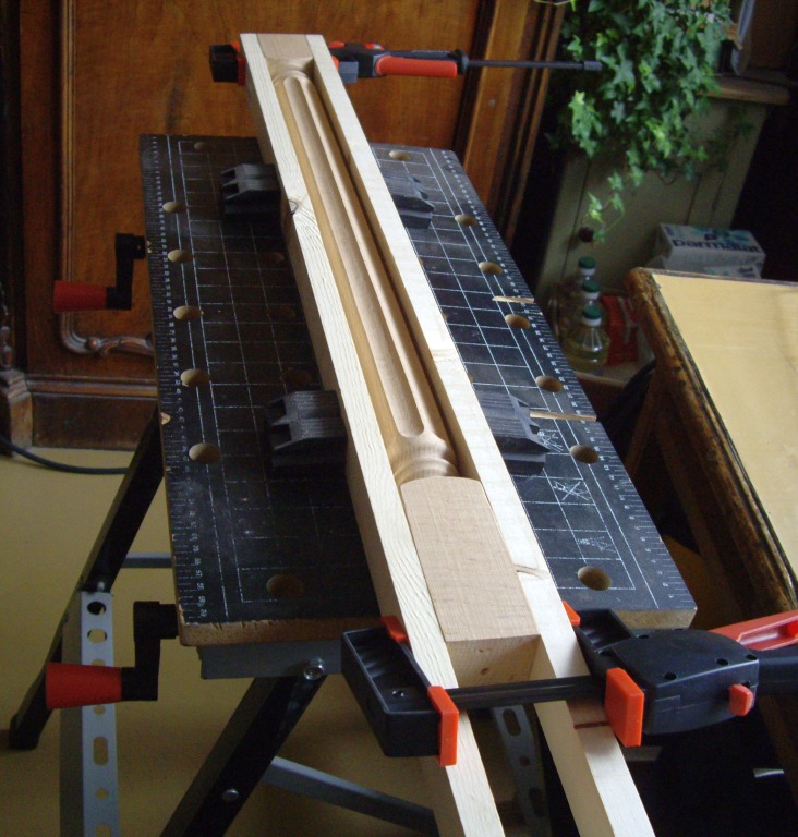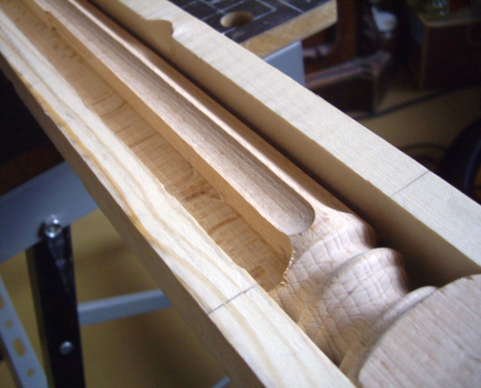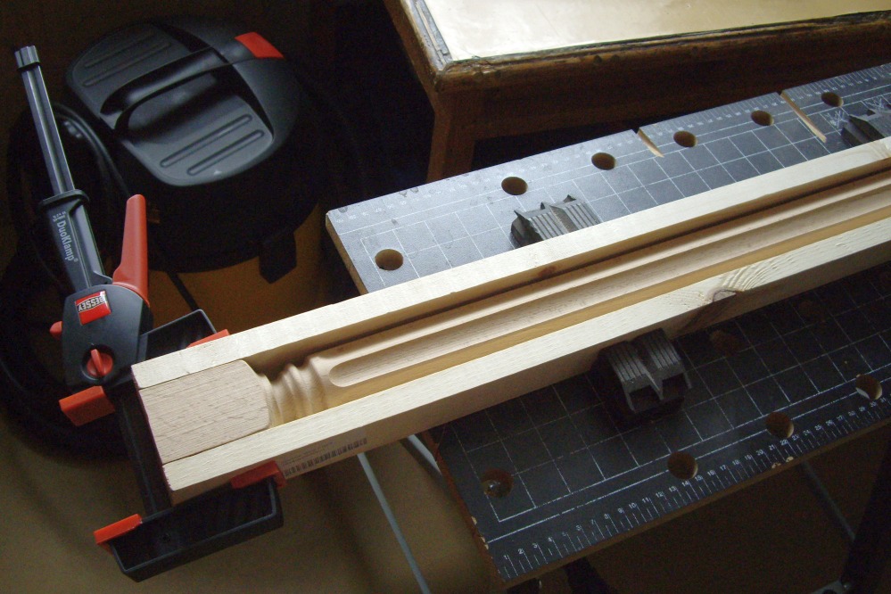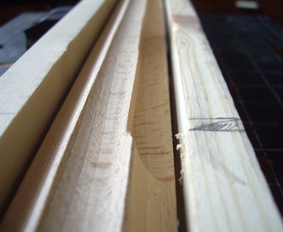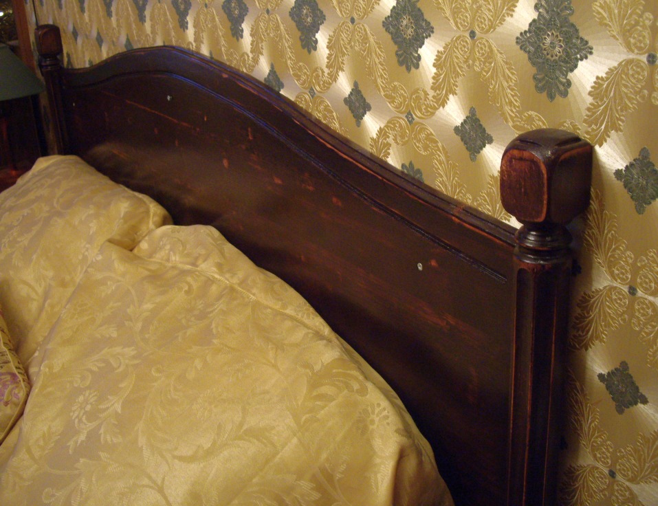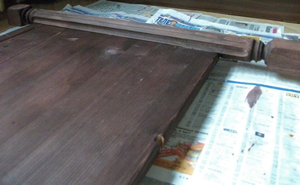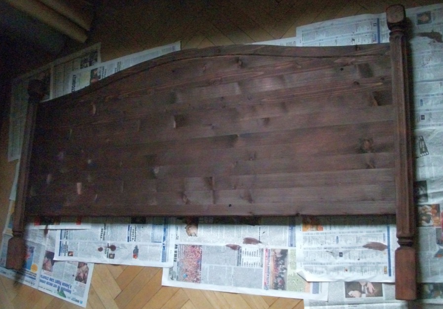 Этим летом куплена кровать вместо старой. Та поехала на дачу (дачный диван на венанду, верандный - в топку :)) Кровать купил в виде матраса и основания. Основание не имеет никакого вида (невидимое) - просто рама с буковыми ламелями, на металлических ножках. А спальню оформляли с некоторой претензией на аристократизм ;) В общем, думал я думал, как на пятак рублей купить и придумал. Кровать стоит спиной к стене. То есть, не хватает, собственно, спинки, защищающей обоих от засаливания головой, ну и для вида. И решил я изготовить фальш-спинку. И прикрепить её к стене непосредственно. Двигать кровать будет нельзя, но и не собираемся. Это единственный недостаток проекта. Зато бюджет смехотворен, а результат... ну дело вкуса, а я весьма доволен. Итак, куплен мебельный щит размера 1500х600. Лучше было бы подлиннее, но не хотелось резать 2-хметровый, да и в машину его не запихнуть... Ширины хватило внатяг. Куплены и 2 балясины из бука, которые должны будут сыграть роль ножек-колон. Балясины по 300 р. штука. Щит 500 р. Ещё куплен лак акриловый прозрачный (даже не лак, а пропитка лессирующая) Dufatex Aqua полуматовая. 200 р. Морилку взял спиртовую, она у меня была уже давно. Ещё купил колер красный для красок. 20 р. Кисти были. Вначале начерчена кривая спинки, для чего изогнут кусок оргалита и по нему изготовлен шаблон из куска пластика 5 мм. К сожалению, кусок был небольшим, а длина кривой (по прямой!) - 1,5 м. Так что пришлось в 4-е прохода делать рез. Лобзиком обрезал, потом подровнял ленточной шлифмашиной. Можно и ровнее, но не в этот раз уже... Потом фрезером с паралелльным упором выбран паз вдоль кривого края. Это делать очень неудобно, лучше было бы изготовить что-то вроде 2-хроликового упора, чтобы фрезер устойчиво упирался в кривой край. Так что сделан паз в полуручном режиме. Карнизной фрезой. Потом край обработан фасонной врезой Самое сложное (для меня) оказалось срастить щит с балясинами. Они же должны прижиматься к стене и не болтаться. Боковой поверхностью. невообразимой формы стыковаться с ровным торцом щита. В итоге, балясины были поочерёдно зажаты в тиски 2-мя брусками (чтобы фрезеру было на что опереться подошвой) и погружным фрезером пазовой фрезой выбран паз толщиной 18 мм, соответсвующей толщине щита. После этого излишки длины (квадратного сечения) были изсечены дисковой пилой и им придана какая-то форма. Все углы и выступы обработаны эксцентриковой шлифмашинкой (ЭШМ.) Дальше - щит приклеен к балясинам, и стянут дополнительно маленькими саморезами со стороны стены. Всё изделине обработано морилкой, после высыхания которой снова берём ЭШМ и создаём эффект старнины (неравномерного протирания тонированного слоя.) Так как цвет морилки мне не очень глянулся, пришлось применить творческий подход - набодяжить в колерованный лак немного красного колера и пройти первым слоем так. После дополнительного шлифования ЭШМ наложено 2...3 слоя бесцветного лака. Лучше, конечно, избегать шлифования по лаку, так как лак любит забивать/засаливать шкурки, повышается расход. Да и смысл? Лак нанёс/лак содрал. Лак стоит недёшево. Лучше сразу попасть в цвет с морилкой. Ещё об ошибках: я до морилки прошёлся ЭШМ, этого делать не надо было, ухудшилась проработка текстуры морилкой. Это у меня привычка сработала - прежде чем покрытие наносить подготовить поверхность. Так как первое покрытие - изобразит