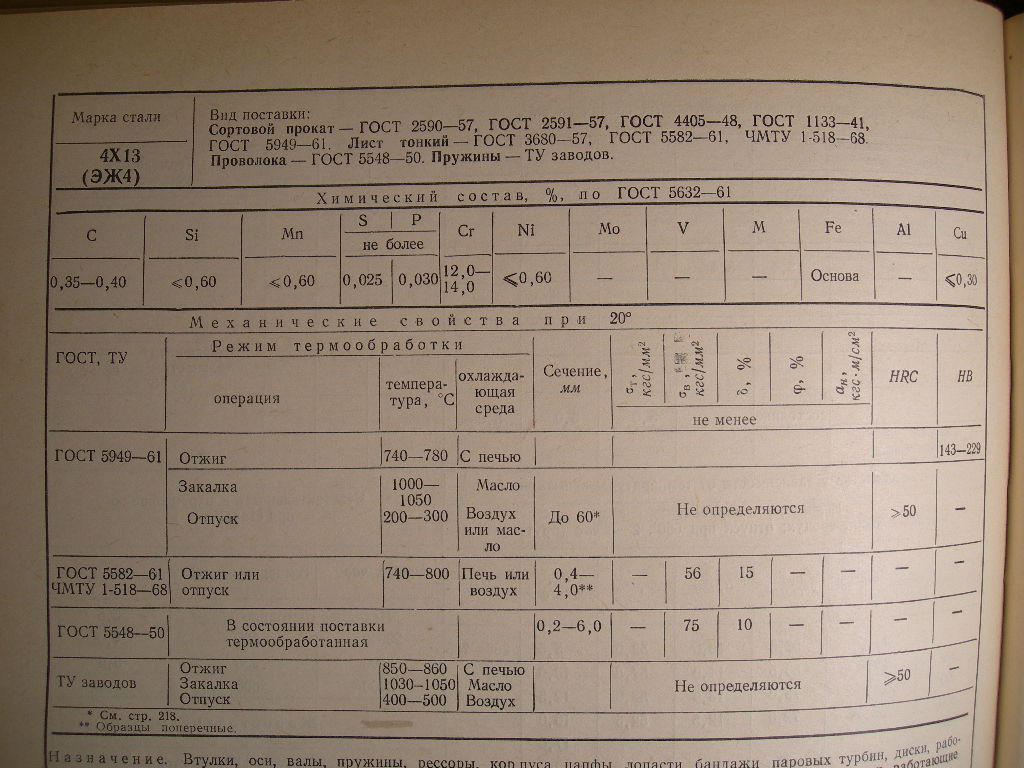 Вот состав стали 4Х13... см.фото. (справочник 1971 года, присутствует ещё более старое название стали...)