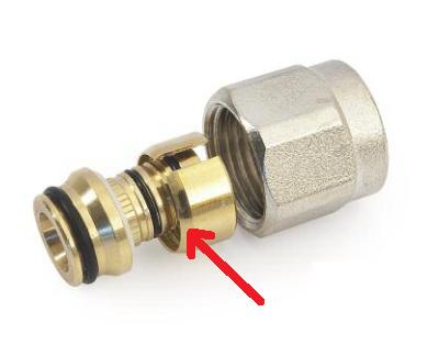 Собрался прикручивать трубу к коллектору GF соответствующим евроконусом. Разрезное кольцо - с одной стороны имеет больший т.н. конус (стрелка на фото), с другой - как в обычных фиттингах, например tiemme. При этом фото из каталога производителя, больший конус направлен в сторону седла ниппеля (само седло в месте контакта с кольцом абсолютно плоское), а меньший - в сторону гайки. Напрашивается перевернуть кольцо в сторону гайки. Вопрос - какой стороной одевать кольцо?