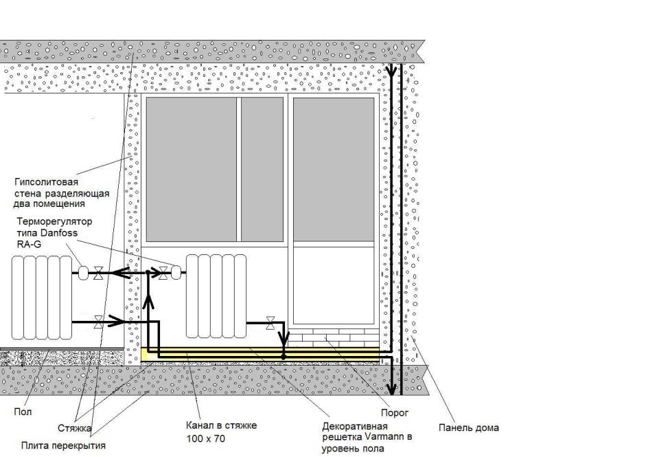 Кстати, а как Вы рассматриваете нижнее подключение радиаторов? Например, у нас в офисе стоят радиаторы с подключениями снизу: и вход, и выход. Или там тоже нет U-образной петли, или система замкнутая для здания и не больше? Я тут прикинул, у меня же уже стоит один радиатор в котором тоже такая же петля получается. Единственное отличие от новой схем в том, что там вертикальные участки U-формы чуть покороче получились. Но все равно петля, как не крути. Радиатор стоит уже 10 лет, и ничего. При этом байпас того же диаметра, что и стояк, и подключение одностороннее, и удлинителя потока нет. И тьфу-тьфу-тьфу, все пока работает и греет отменно.
