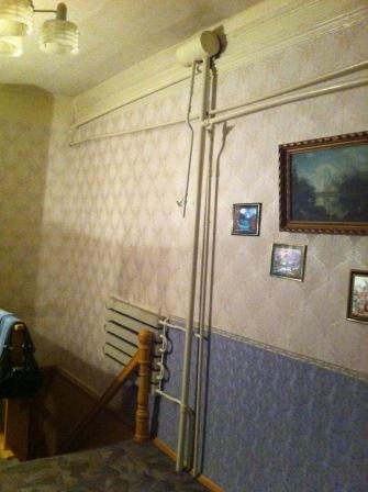Здравствуйте уважаемые, форумчане . Я проживаю в старом фонде в 2х этажном кирпичном доме с деревянными перекрытиями. На втором этаже в квартире. Снизу живут соседи. Планирую ремонт, в связи с чем встал вопрос о замене труб ГВС и ХВС. Но если с ХВС более менее все ясно, то с ГВС имеются сложности. Отопление к соседям идет через меня. Подскажите пожалуйста,как можно заменить стояк, кот. на фото (на плане отмечен красным). Раз в сезон я подключаю шланг к верхнему крану и осуществляю спуск воздуха из системы. Можно ли избавится от расширительного бачка к которому идет труба спуска воздуха? Можно ли заменить стояк на полипропилен? Можно ли выносить кран спуска воздуха в другое удобное место (например вправо, там за стеной санузел) ? Заранее благодарю всех за помощь.