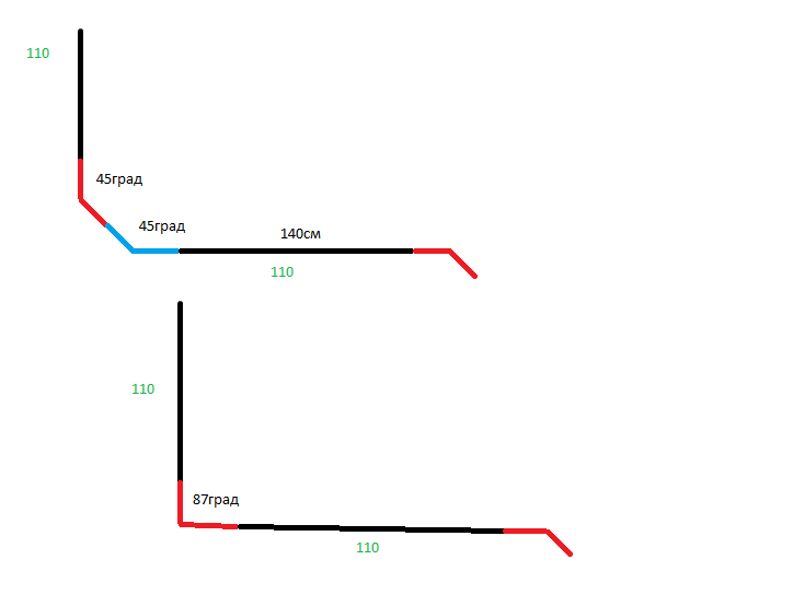 Я планирую использовать 2*45 получая плавный сток.... но в итоге трубы будут идти без уколона.....или их можно за счет длины как то изогнуть??