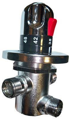 Если на выходе смешанной воды будет стоять запорный кран , то смеситель будет выдавать заданную температуру с задержкой