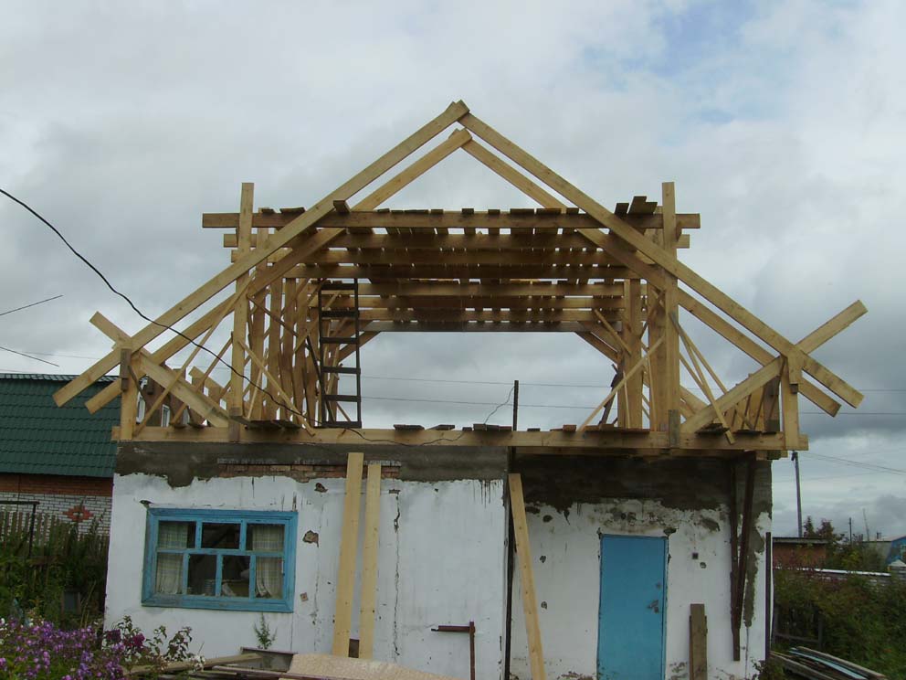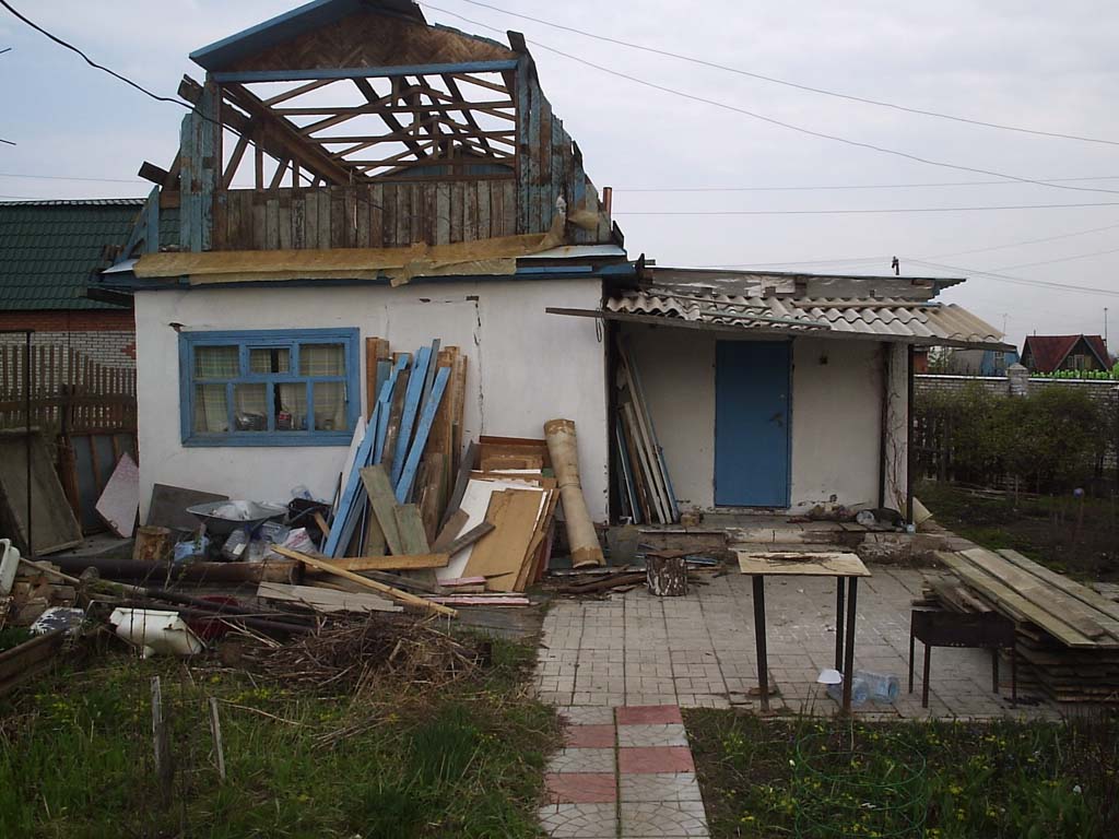 В апреле начал. Цель-сделать общую крышу ,сделать потолки 2.50,поднять пол и сделать под ним вентилируемое пространство. На фото видно отсутствие продыхов+сверху ДВП в итоге пол сгнил.