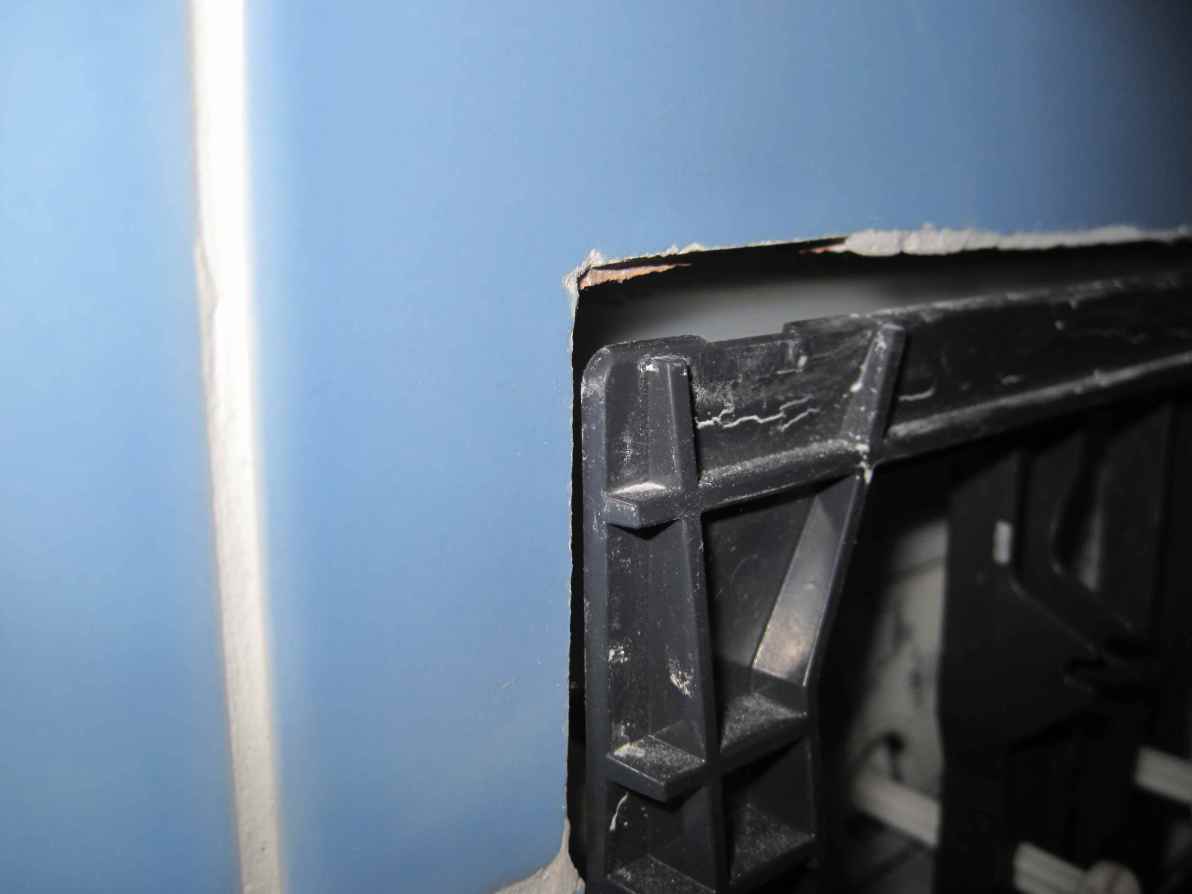 - Проблема намбер ван - отверстие под кнопачгу (дельту 21) сделали падлы с запасом - при установке кнопки есть щели ;) посоветуйте что лучше - найти родную заглушку (кстати где посоветуйте - а то родную кАзлы выкинули) и по ней заштукатурить или просто с припуском обклеить белыми пластиковыми уголками (иначе реально опора под кнопку проваливается в отверстие - на фотках просто это не так заметно).
