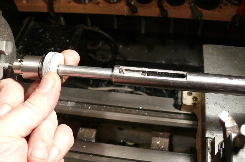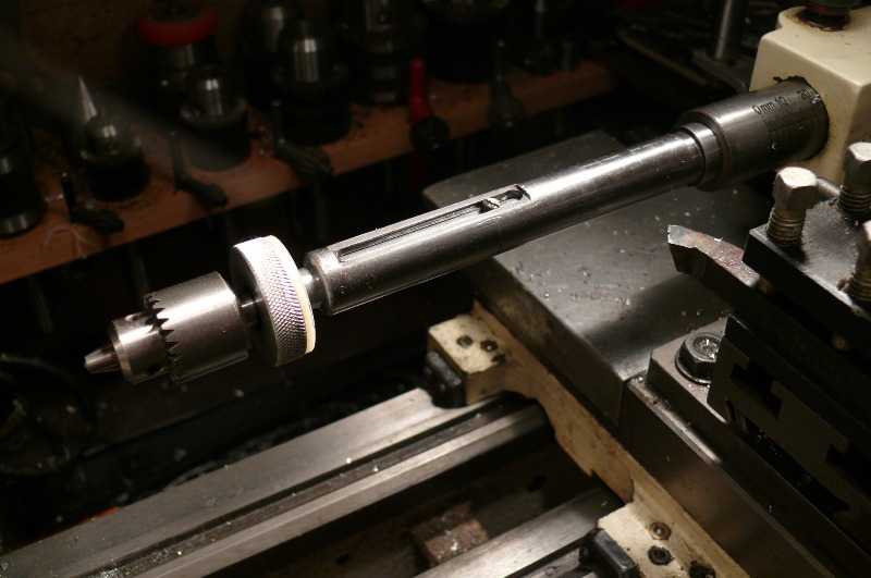 Потом на чипе мне подсказали, что сверлить мелкие отверстия надо держа патрон рукой. Сверлить я ещё не пробовал, а вот резьбу М3 резал. Метчик в патрон сверлильный и в З.Б. , но не совсем до конца. Крутишь патрон рукой и всё прекрасно получается.