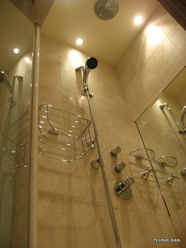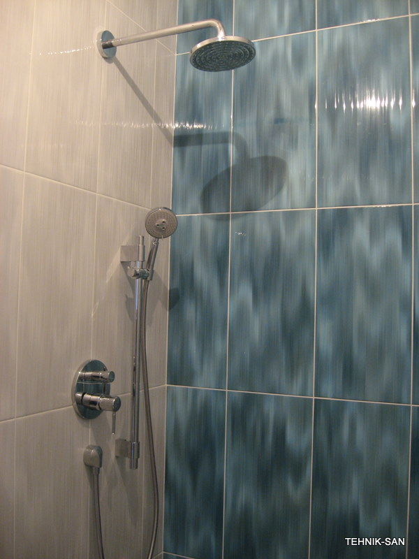 Tehnik-san написал : Для нижнего блока I-Box был использован термостат , который является только смешивающим до определенной температуры воду и он не является запорным механизмом, смешанная вода поступает в верхний блок. Для верхнего встраиваемого блока была куплена наружная часть HANSGROHE iControl S запорный/переключающий вентиль, СМ арт. 15955000. Оба флажка являются и запорными и переключающими смешанную воду на потребителей. Верхний флажок имеет функцию только "вкл-выкл" для верхнего душа , а нижний флажок имеет уже три положения а) вкл. - излив на ванну б) среднее положение - выкл. г) вкл. - боковой ручной лейки