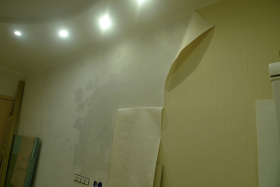 С ресурсами сейчас не очень (надо подождать), поэтому делаю своими силами, что могу. Выровнить стены быстро не могу, вроде сделала...зашкурила, но снова эти завалы. Стена еще полностью должна остаться свободной, то есть на ней видно все. Поэтому вчера ночью отодрала и снова выравниваю. Она стала даже беленькой.