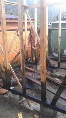 Егор, сейчас доделываем каркас 1го этажа. Нижняя обвязка пропитана Неомидом и Кусбаслаком. Пропитана и нижняя часть стоек. Если повезет, то будем сегодня делать черный пол в прихожей и ставить компакт. Надеюсь туалет будет функционировать раньше, чем начнем строить крышу.