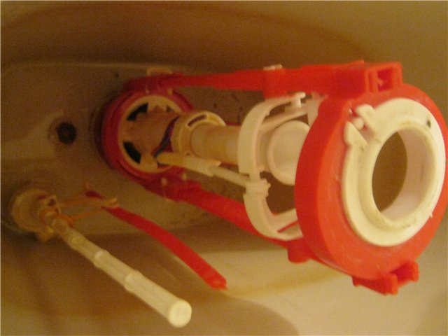 После того как выносил/заносил унитаз из санузла, после последней такой манипуляции вода стала самотеком вытекать из бачка в сам унитаз. Открыв унитаз, увидел кучу пластмассовых деталей.