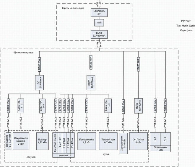 в квартире планируется два щита на 12 и на 18 позиций, разнесены исходя из экономии и удобства прокладывания проводки. схему комплектации щитов могу выложить