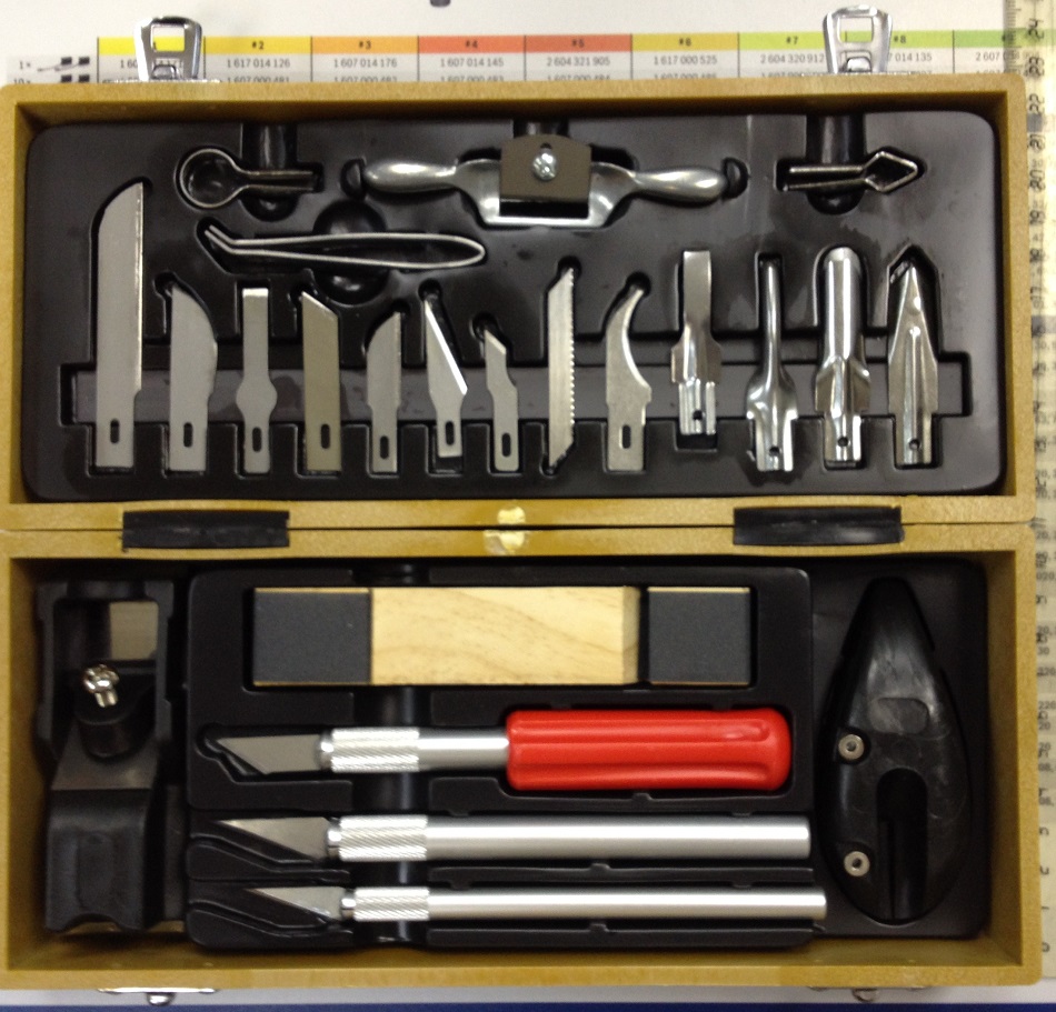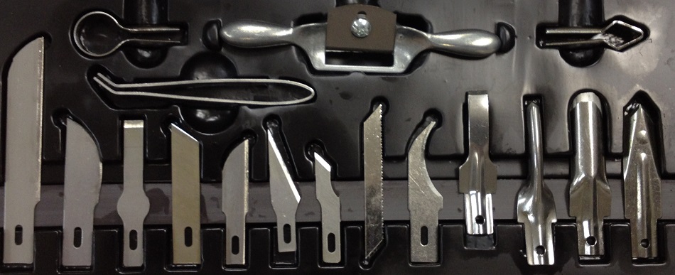 теперь собралось 3 набора штихелей/скальпелей - и по всей видимости полный комплект возможных лезвий и ручек