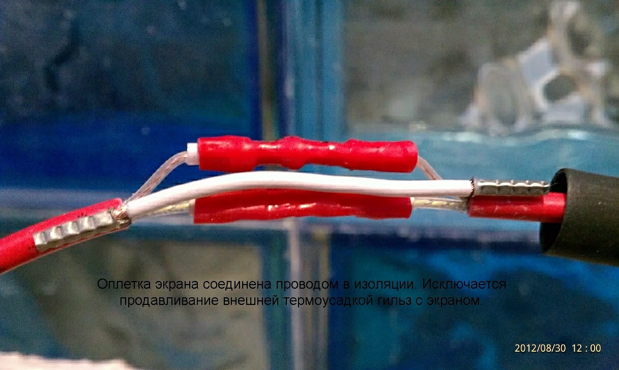 С проблемой "прокалывания" гильзами термоусадок(внутренних) боролись ещё одной коротенькой промежуточной термоусадкой(средней по размеру) между нагревательными жилами и экраном(не очень удобно). Я даже как то пытался одевать второй слой клеевой термоусадки(чуть пробегал феном) или бесклеевой термоусадки(она более толстая хотя менее эластичная). Ещё кусочек сырой резины подкладывал между гильзами. Высший пилотаж - это когда гильзы чуть разнесены относительно друг друга, но такое редко когда удаётся сделать. Пластиковые "краешки" гильз обрезаю почти в ноль, ИМХО так лучше клей "затечёт" во все полости. Концевики тоже как то использовал, но редко и пластиковые юбочки с них срезал(после обжима).