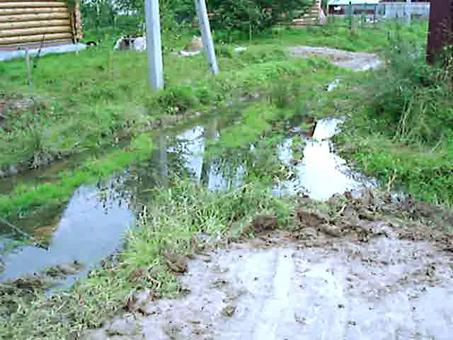 Добрый день всем! Недавно приобрели участок ) но к нему невозможно подъехать... дорога представляет собой углубление... (сами участки наш и соседней выше относительно дороги) после сильнейших дождей, которые идут практически все лето... ((( в этом углублении стоит вода (сейчас даже туда пройти не возможно)